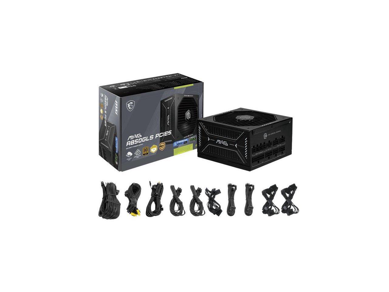 MSI MAG A850GLS PCIE5, Fully Modular Compact Gaming 850W Power Supply, 80+ Gold, ATX 3.1 & PCIe 5.1 Ready, Native Dual-color 12V-2x6 cable, Low-Noise, Embossed Jacket Cables, 10 Year Warranty