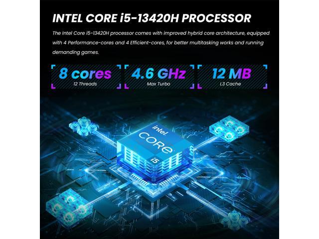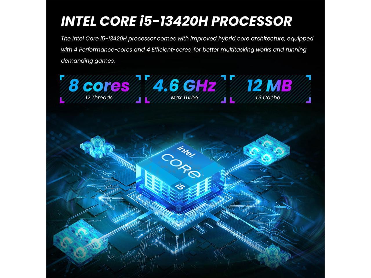 - [Processor]Intel Core i5-13420H Processor (8 Cores, 12 Threads, 12 MB L3 Cache, Base Frequency at 2.1 GHz, Up to 4.6 GHz at Max Turbo Frequency), paired with NVIDIA GeForce RTX 4060 Laptop GPU(8GB GDDR6)