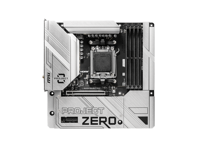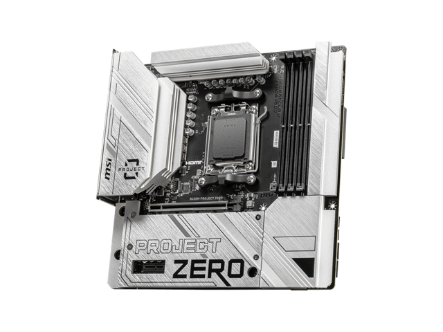 MSI B650M PROJECT ZERO AM5 AMD B650 Ryzen 7000 SATA DDR5 PCI-E x16 slot 2x M.2 Wi-Fi 6E Bluetooth 6Gb/s mATX Back Connect Design Motherboard