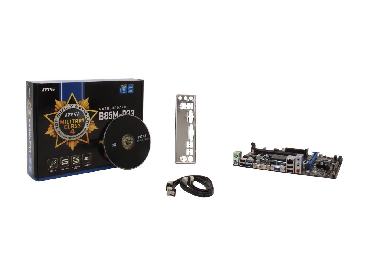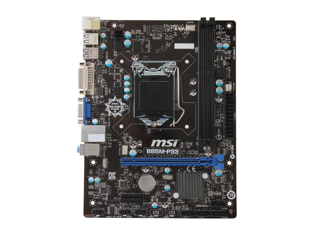 MSI B85M-P33 LGA 1150 Intel B85 USB 3.0 Micro ATX Entry DVI Business Intel Motherboard