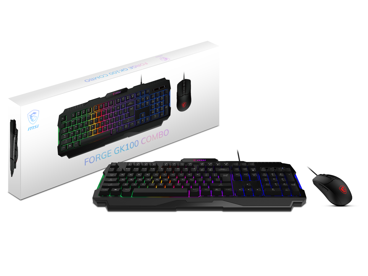 MSI Forge GK100 Combo – Gaming RGB Keyboard & Mouse Set, 19-Key Anti-Ghosting, 6400 DPI Optical Sensor, 6-Mode RGB, up to 6,400 DPI, Black