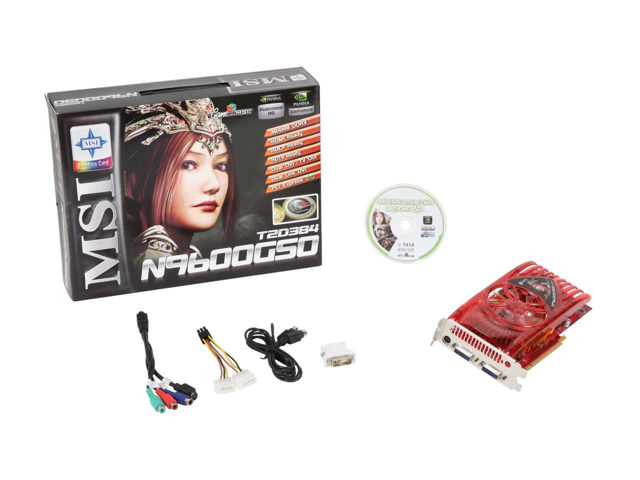 MSI GeForce 9600 GSO 384MB GDDR3 PCI Express 2.0 x16 SLI Support Video Card N9600GSO-T2D384 OC