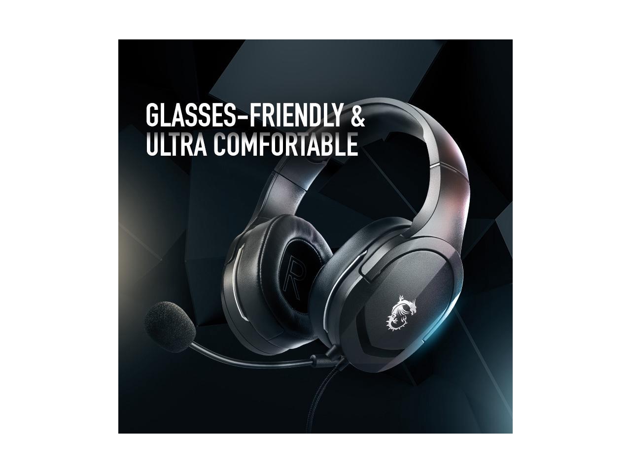 MSI Immerse GH20 Wired Gaming Headset, Adjustable Lightweight Design, Volume Inline Controls, Glasses-Friendly Ear Cups, 3.5mm Audio Jack, PC/Mac/PS4/Xbox