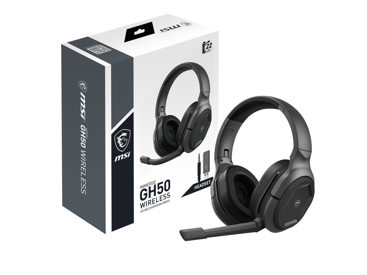 MSI Immerse GH50 Wireless Gaming Headset – 22 Hr Battery Life, 50mm Neodymium Drivers, Detachable Omnidirectional Mic, Lightweight Comfort, Cross Platform Connectivity, carrying Pouch