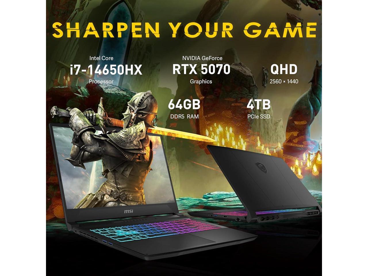 msi Katana 15.6" QHD 165Hz Gaming Laptop, Intel i7-14650HX, GeForce RTX 5070 8GB GDDR7, 64GB DDR5, 4TB SSD, 4-Zone RGB Backlit Keyboard, Cooler Boost 5, Win 11, Black, 512GB Docking Station Set