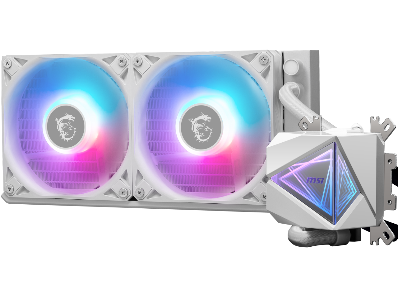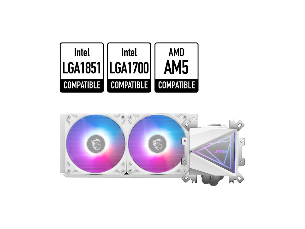 MSI MAG CoreLiquid I240 White - AIO ARGB CPU Liquid Cooler - Infinity Mirror Design - UNI Bracket - 240mm Radiator - Dual 120mm ARGB PWM Fans - LGA 1700/1851 / AM5/AM4 Compatible
