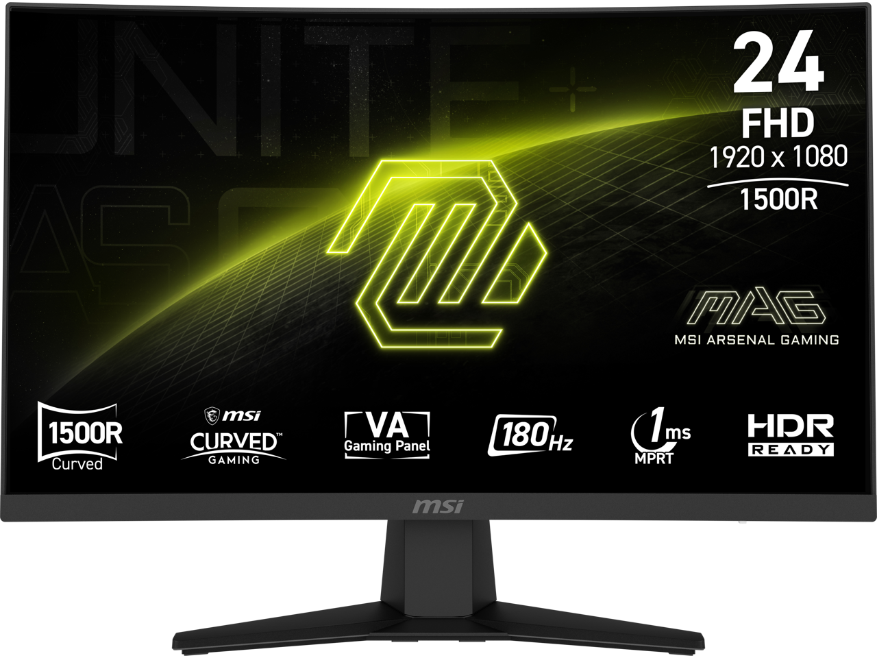 MSI MAG 244C 23.6''Curved Gaming Monitor FHD 1080p 180Hz 1ms Adaptive-Sync HDR Ready VA Panel 1500R Anti-Glare Display 178 Viewing Angle Frameless Design for FPS RPG and Racing Games