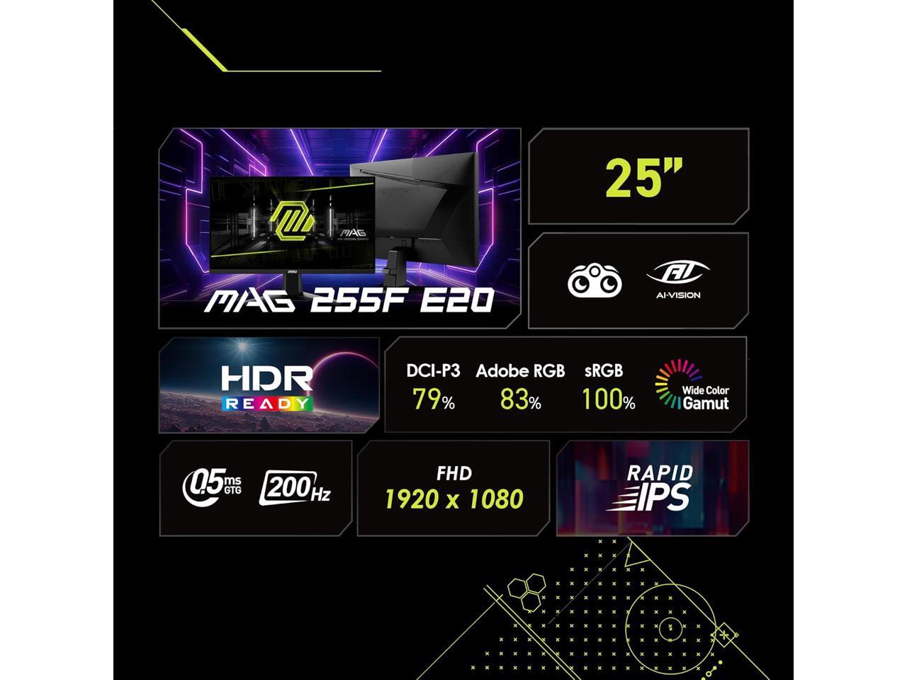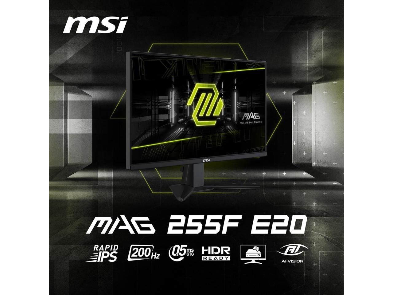 MSI MAG 255F E20 24.5” FHD Gaming Monitor – 200Hz, 0.5ms GtG, AMD FreeSync Premium, HDR Ready, HDMI 2.0, DisplayPort 1.2, Anti-Glare, Adjustable Tilt