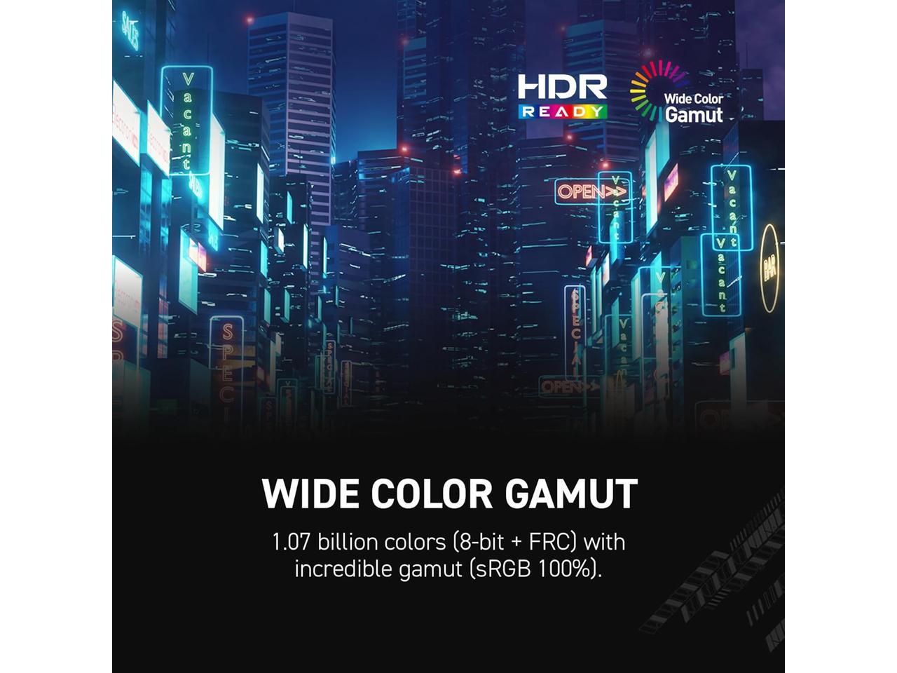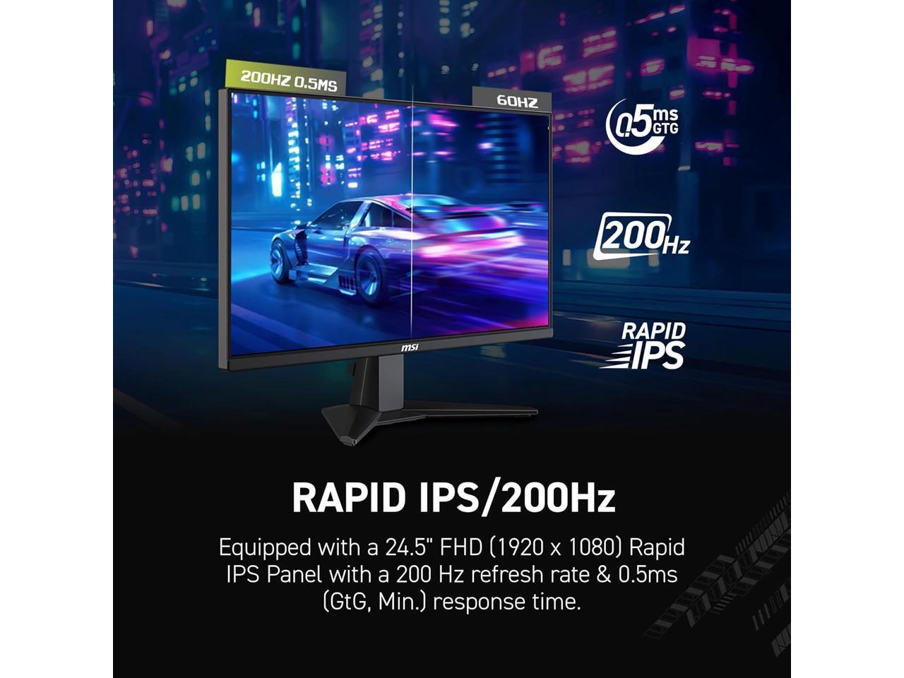 - Rapid IPS Panel - Provides accurate colors, wide 178° viewing angles, and sharp clarity for FPS, RPG/MMORPG, and simulator games.