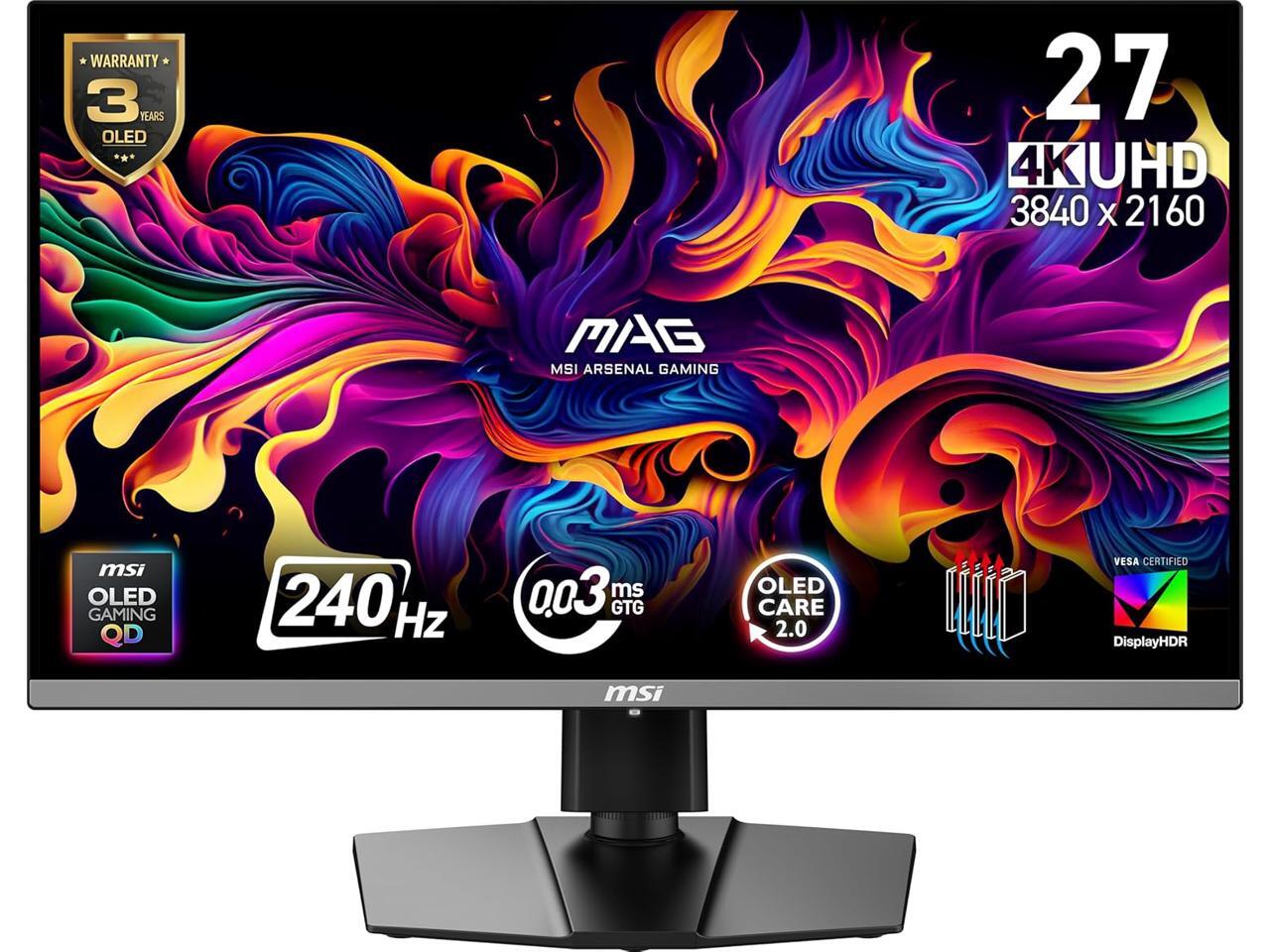 MSI MAG 272UP QD-OLED X24 26.5" QD-OLED UHD 240Hz Gaming Monitor – 4K, 0.03ms, NVIDIA G-SYNC Compatible, DisplayHDR True Black 400, HDMI 2.1, Type-C, Height Adjustable Stand