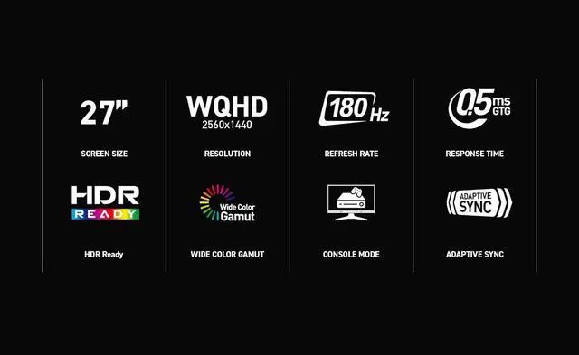 180 Hz Refresh Rate, 0.5ms (GtG, Min.) Response Time