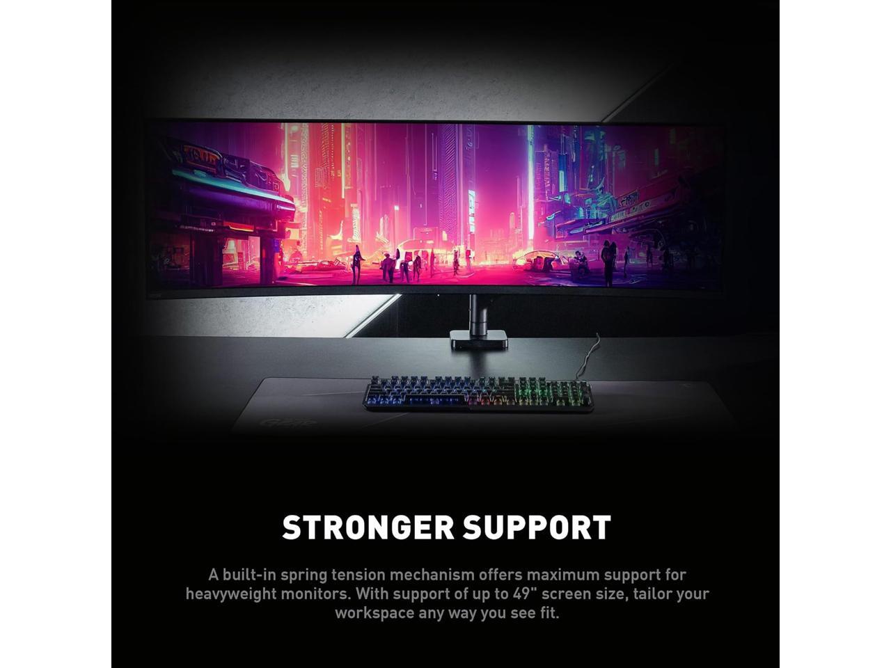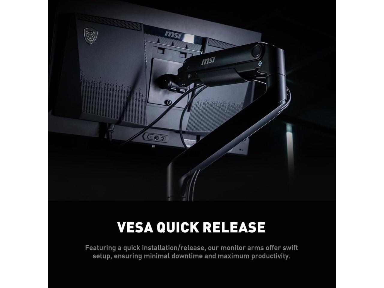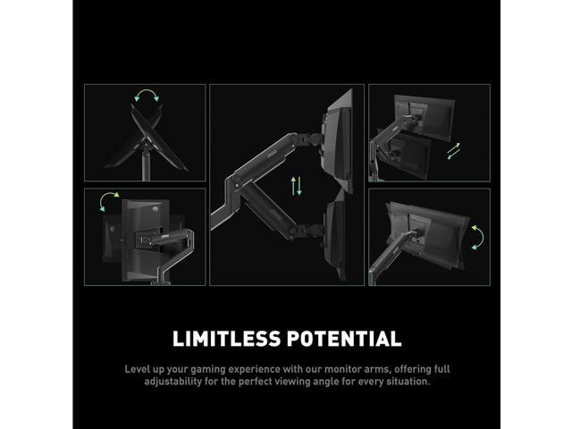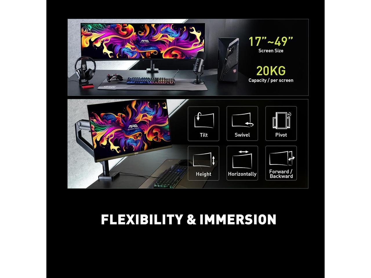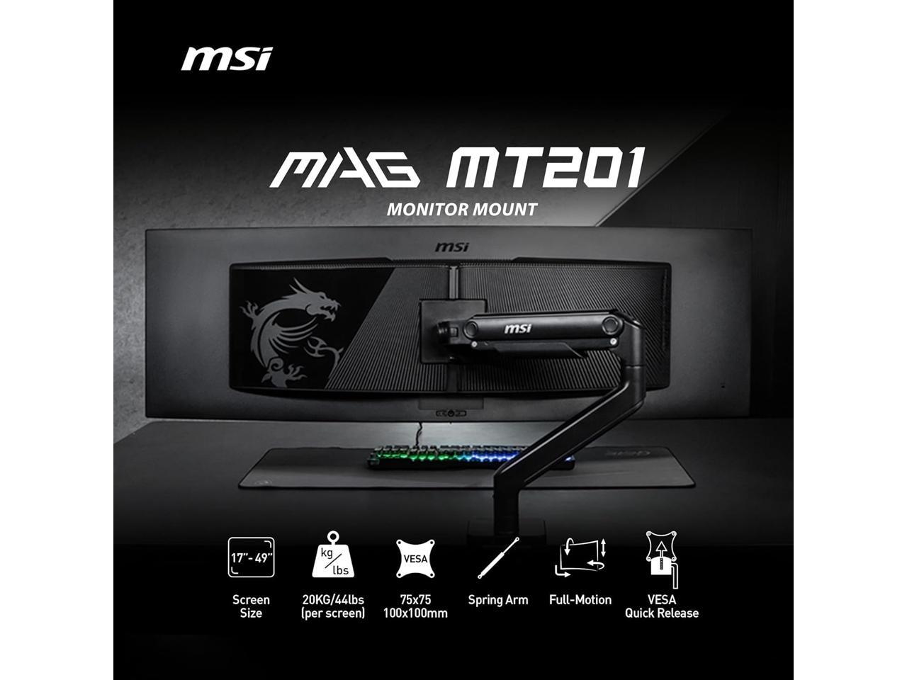 MSI MAG MT201 - Premium Heavy Duty Single Monitor Stand Arm, Supports 17-49" Screens and 44 lbs, VESA Compatible, Adjustable Spring Assisted Mount, Clamp & Grommet, Quick Release Plate - Black