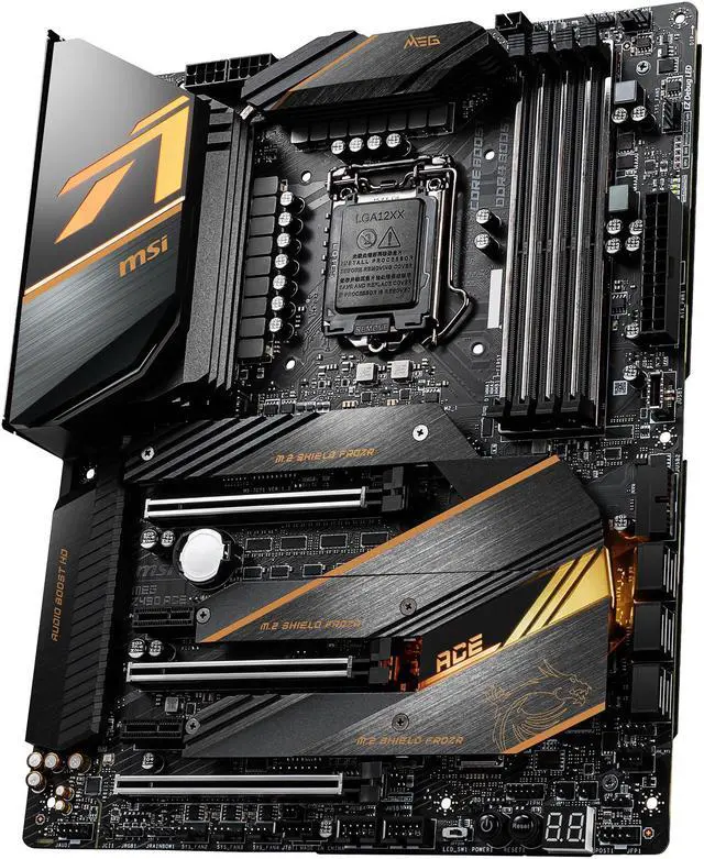 | Features | Supports 10th Gen Intel Core, 11th Gen Intel Core, Pentium Gold and Celeron processors for LGA 1200 socket. Supports DDR4 Memory, up to 5000(OC) MHz. Ready 4 the Future: Support Lightning Gen 4 Solution for the future. Mystic Light: 16.8 million colors / 29 effects controlled in one click. Mystic Light Extension supports RGB, RAINBOW and CORSIAR LED strip. Extreme Power Design: INTERSIL digital PWM, 16+1 phases with 90A Smart Power Stage, dual CPU power connectors and exclusive Mirrored Power Arrangement to unleash the true power of your processors. Outstanding Cooling Solution: Frozr Heatsink, VRM Heat-pipe, MOSFET Baseplate and M.2 Shield Frozr ensure the extreme performance with low temp. Latest Network Solution: Onboard 2.5G LAN plus Gigabit LAN and latest Wi-Fi 6 solution deliver the best online experience without lag. Smart Button: One button with multiple hardware control. Reset Computer, Safe Boot, Turbo Fan and EZ LED control functions with just one click. Triple Turbo M.2 with Shield Frozr: Turbo M.2 delivers PCI-E Gen3 x4 performance with transfer speeds up to 32 Gb/s for the latest SSDs. Audio Boost HD: Isolated audio with a high quality audio processor with ESS DAC & Nahimic for the most immersive gaming experience. |