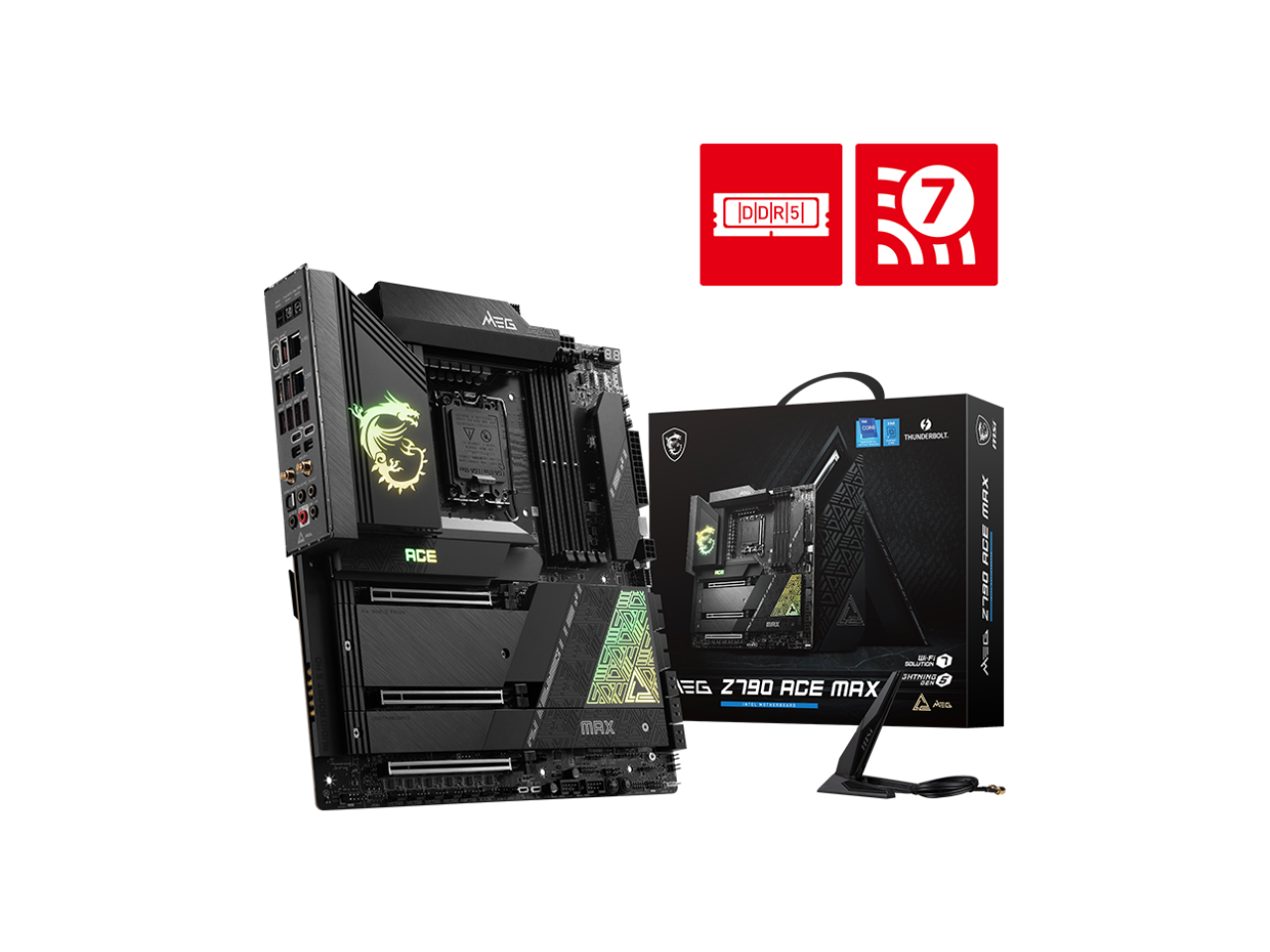 MSI MEG Z790 ACE MAX LGA 1700 Intel Z790 SATA 6Gb/s Extended ATX DDR5 2x Intel 2.5Gbps LAN PCI-E x16 slot Wi-Fi 7 5x M.2 Motherboard