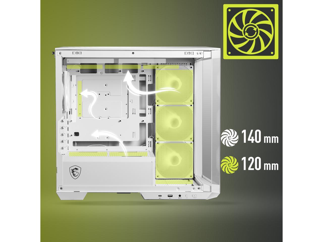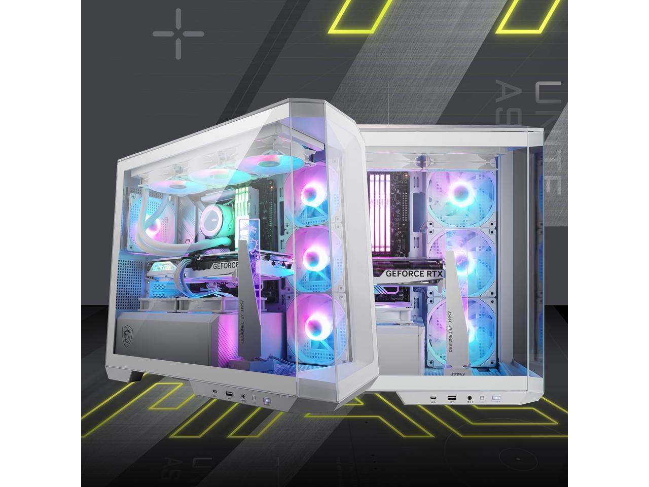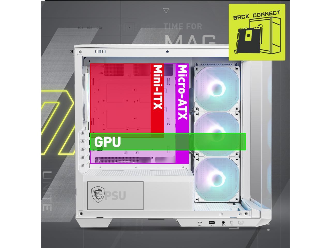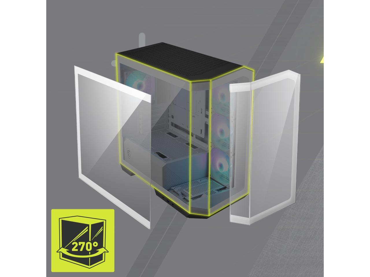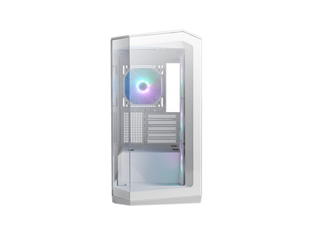MSI MAG PANO M100R PZ White Micro-ATX PC Case - Supports Back-Connect Motherboard, 4 ARGB Fans, Lighting Hub, GPU Support Stand, Dust Filters, USB Type-C (20Gbps), 270-degree Panoramic Display