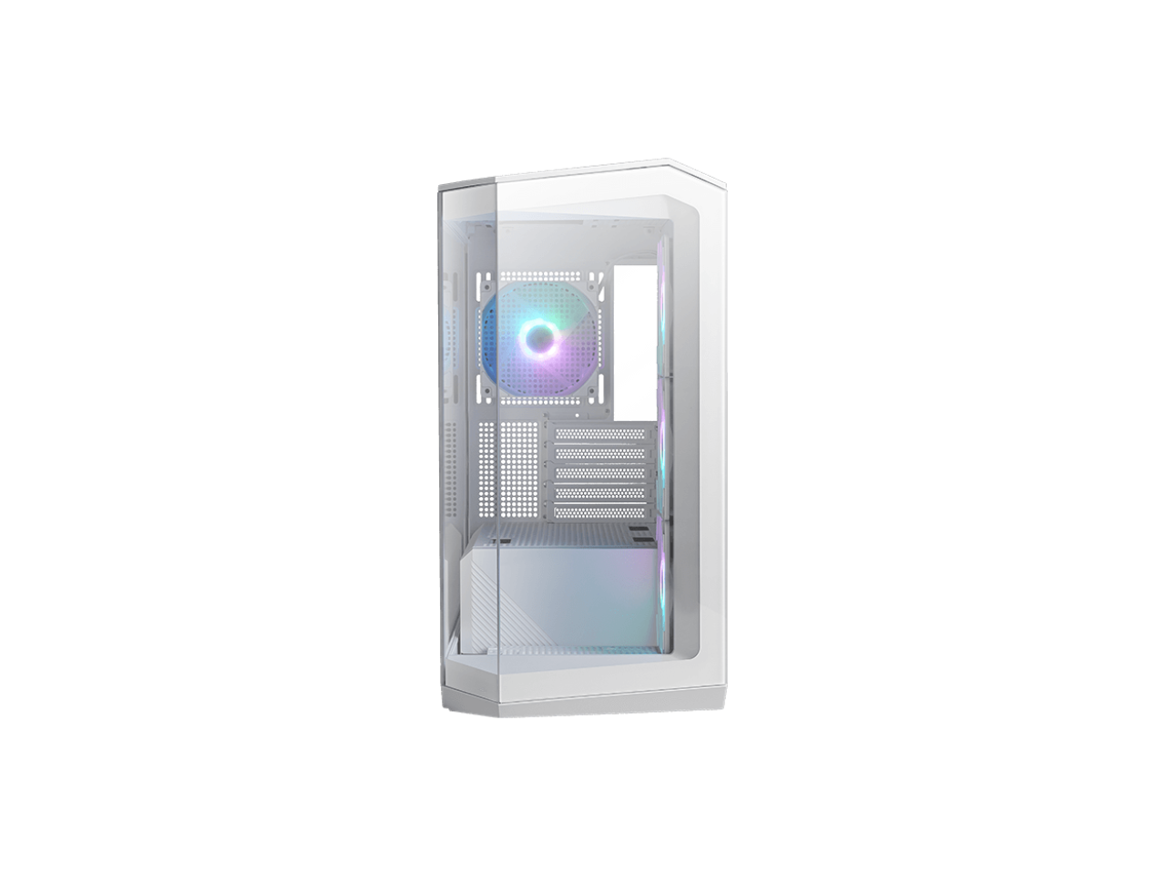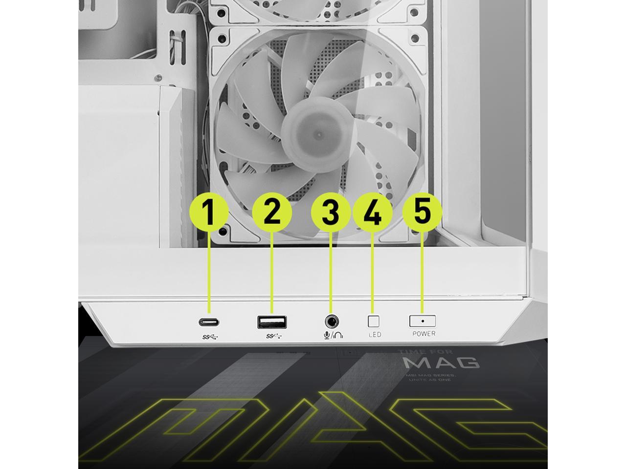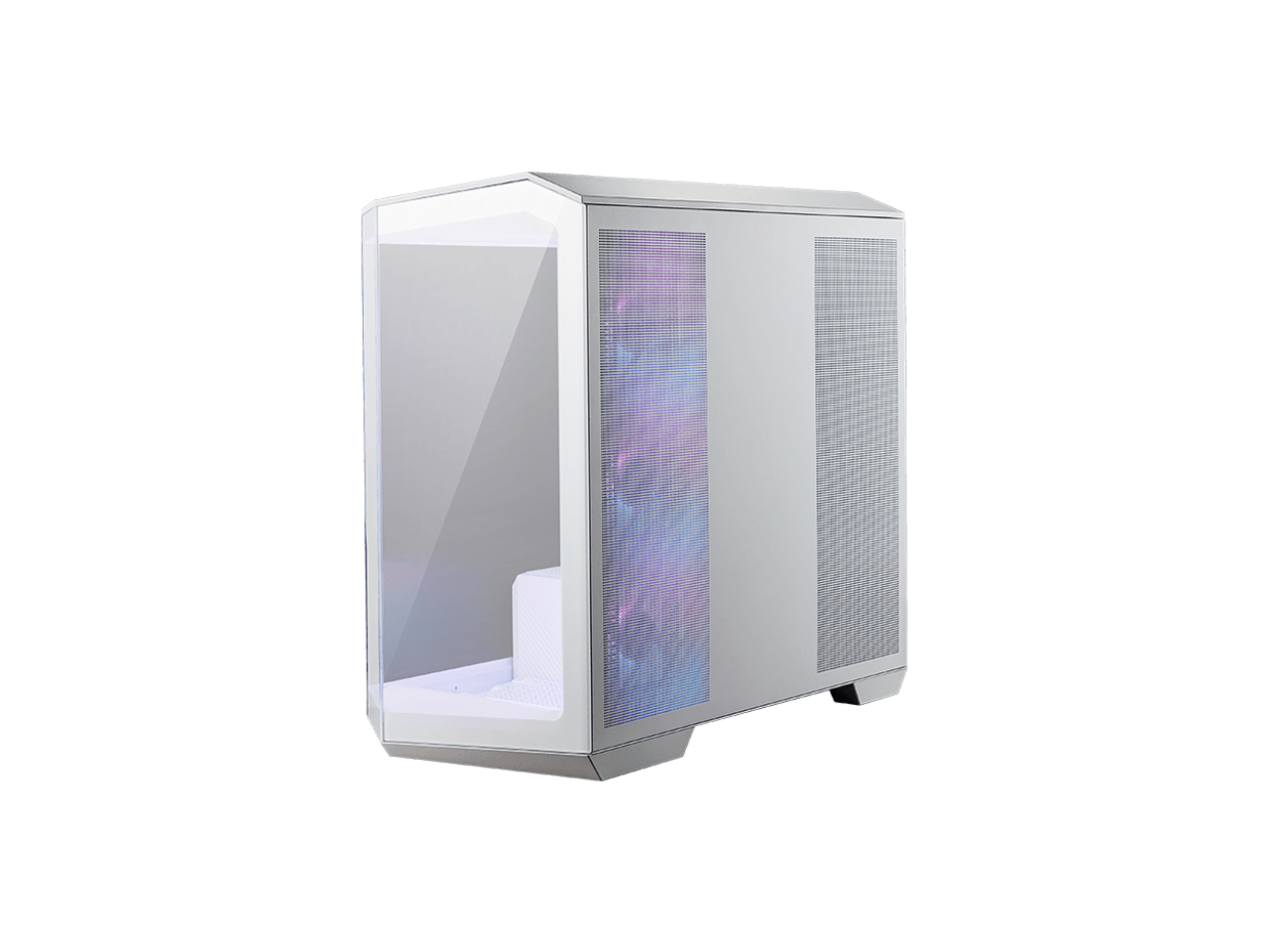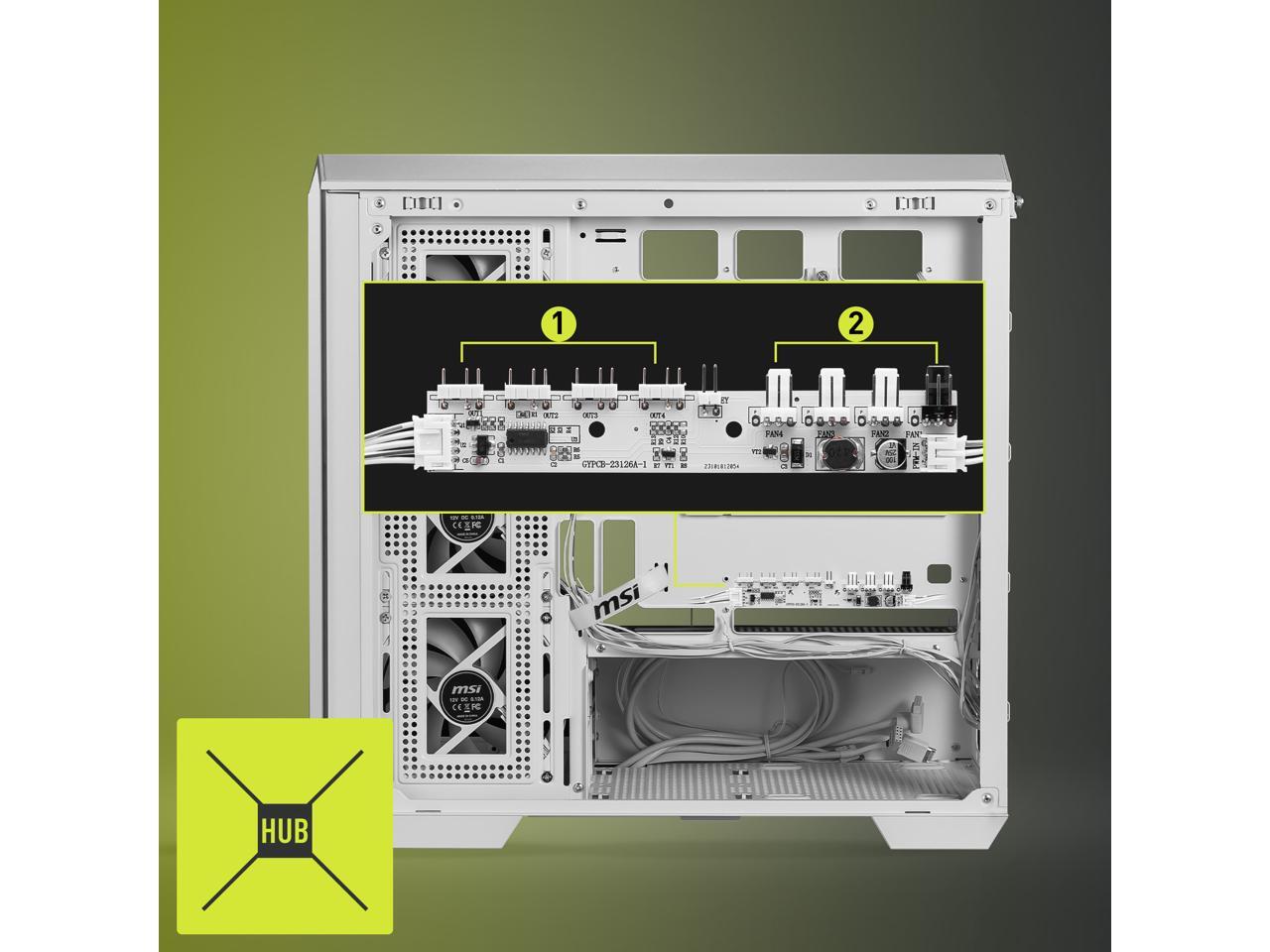 MSI MAG PANO M100R PZ White Micro-ATX PC Case - Supports Back-Connect Motherboard, 4 ARGB Fans, Lighting Hub, GPU Support Stand, Dust Filters, USB Type-C (20Gbps), 270-degree Panoramic Display