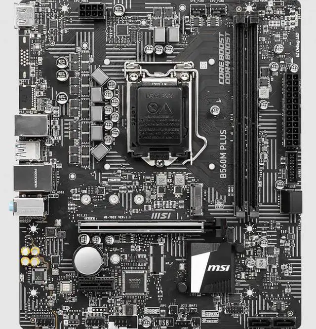 Supports 10th Gen Intel® Core™ Processors, 11th Gen Intel® Core ™ Processors, Pentium® Gold and Celeron® Processors Processor socket LGA1200 CHIPSET Intel® B560 chipset MEMORY 2x DDR4 memory slots, support up to 64GB1 Supports 1R 2133/ 2666/ 2933 MHz for 10th Gen Intel® CPU (by JEDEC & POR) Supports 1R 2133/ 2666/ 2933/ 3200 MHz for 11th Gen Intel® CPU (by JEDEC & POR) Max overclocking frequency: 1DPC 1R Max speed up to 4800 MHz 1DPC 2R Max speed up to 4600+ MHz Supports Dual-Channel mode Supports non-ECC, un-buffered memory Supports Intel® Extreme Memory Profile (XMP) Please refer to www. msi. com for more information on compatible memory See supported memory EXPANSION SLOT 1x PCIe x16 slot (From CPU) Support up to PCIe 4.0 for 11th Gen Intel® CPU Support up to PCIe 3.0 for 10th Gen Intel® CPU 1x PCIe 3.0 x1 slot (From PCH) ONBOARD GRAPHICS 1x HDMI 2.0 b with HDR port, supports a maximum resolution of 4K 60Hz12 Available only on processors featuring integrated graphics. Graphics specifications may vary depending on the CPU installed. AUDIORealtek® ALC897 Codec 7.1 -Channel High Definition Audio LAN1x Intel® I219V 1Gbps LAN controller STORAGE Intel® B560 Chipset 4x SATA 6Gb/s ports (From B560 Chipset) 1x M. 2 slot (Key M) M2_1 slot (From B560 Chipset) 1 Supports up to PCIe 3.0 x4 Supports 2242/ 2260/ 2280 storage devices SATA4 will be unavailable when installing M. 2 SATA SSD in the M2_1 slot. USB Intel® B560 Chipset 4x USB 3.2 Gen 1 5Gbps ports (2 Type-A ports on the back panel, 2 ports available through the internal USB 3.2 Gen 1 5Gbps connector) 6x USB 2.0 ports (4 Type-A ports on the back panel, 2 ports available through the internal USB 2.0 connectors) FORM FACTOR Miro-ATX Form Factor 9.29 in.