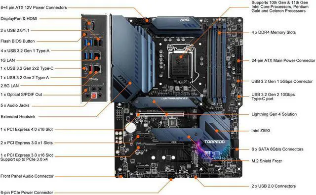 Intel Z590 Supports 11th / 10th Gen Intel Core processors Supports Intel Pentium Gold / Celeron processors DDR4 1R 3200 / 2933 / 2666 / 2133 for 11th Gen Intel CPU (by JEDEC & POR) DDR4 1R 2933 / 2666 / 2133 for 10th Gen Intel CPU (by JEDEC & POR) Max overclocking frequency: 1DPC 1R Max speed up to 5333 1DPC 2R Max speed up to 4700+ 2DPC 1R Max speed up to 4400+ 2DPC 2R Max speed up to 4000+