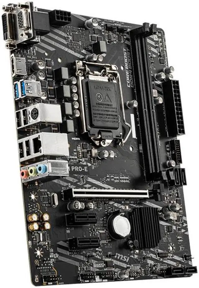 Core i7/ i9: Supports up to DDR4 2933 MHz Intel Core i5 and below: Supports up to DDR4 2666 MHz Supports Dual-Channel mode Supports Intel Extreme Memory Profile (XMP) Maximum Memory 64GB Graphics Graphics 1x VGA port, supports a maximum resolution of 2048x1536 @50Hz, 2048x1280 @60Hz, 1920x1200 @60Hz 1x HDMI 1.4 port, supports a maximum resolution of 4096x2160 @30Hz 1x DVI-D port, supports a maximum resolution of 1920x1200 @60Hz Connector & Ports HDMI 1x HDMI 1.4 port (Resolution of 4096x2160 @30Hz) DVI-D (s) 1x DVI-D port (Resolution of 1920x1200 @60Hz) USB (s) Intel H410 Chipset 4x USB 3.2 Gen 1 5Gbps ports (2 Type-A ports on the back panel, 2 ports available through the internal USB 3.2 Gen 1 5Gbps connector) 6x USB 2.0 ports (4 Type-A ports on the back panel, 2 ports available through the internal USB 2.0 connector) LAN Port (s) 1x Realtek R1111H Gigabit LAN controller Supported Storage Intel H410 Chipset 4x SATA 6Gb/s ports Audio Realtek ALC897 Codec 7.1 -Channel High Definition Audio Internal I/O Ports 1x 24-pin ATX main power connector 1x 8-pin ATX 12V power connector 4x SATA 6Gb/s connectors 1x USB 2.0 connector (supports additional 2 USB 2.0 ports) 1x USB 3.2 Gen1 5Gbps connector (supports additional 2 USB 3.2 Gen1 5Gbps ports) 1x 4-pin CPU fan connector 1x 4-pin system fan connector 1x Front panel audio connector 2x System panel connectors 1x Serial port connector 1x Chassis Intrusion connector 1x Clear CMOS jumper 4x EZ Debug LED TPM (Trusted Platform Module ) 1 x TPM module connector