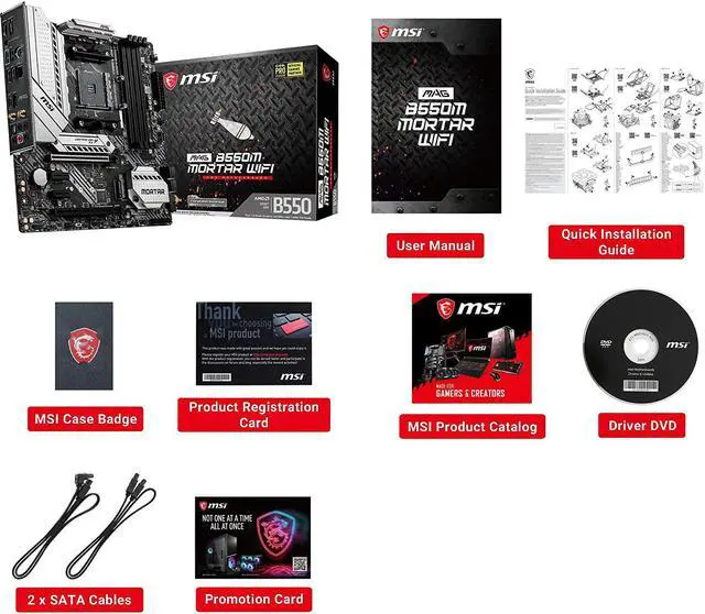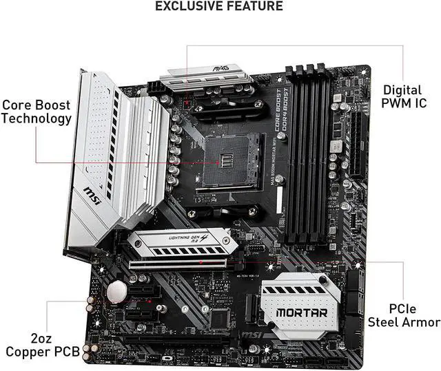 Msi Mag B550M Mortar Wifi Gaming Motherboard (Amd Am4, Ddr4, Pcie 4.0, Sata 6Gb/S, M.2, Usb 3.2 Gen 2, Ax Wi-Fi 6, Hdmi/Dp, Micro-Atx, Amd Ryzen 5000 Series Processors)