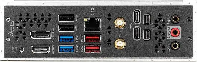 | Back I/O Ports | 1 x DisplayPort 1 x HDMI 1 x LAN (RJ45) Wi-Fi /Bluetooth 2 x Mini DisplayPort 2 x Thunderbolt 4 2 x USB 2.0/1.1 2 x USB 3.2 Gen 1 Type-A 2 x USB 3.2 Gen 2 Type-A 3 x Audio Jacks Clear CMOS Button |