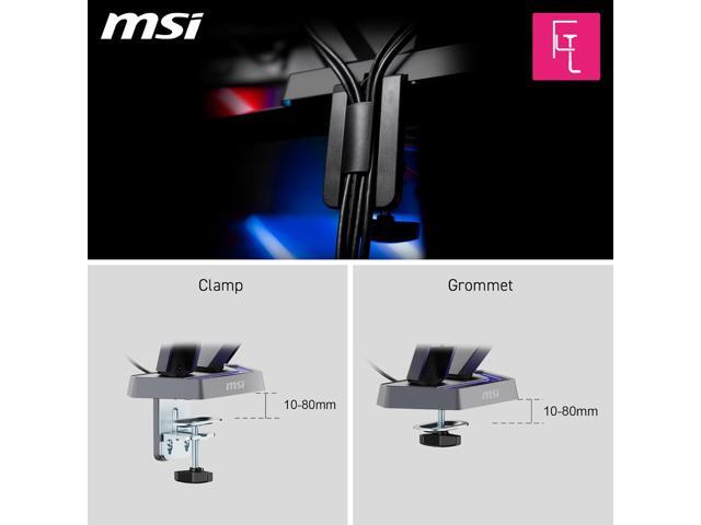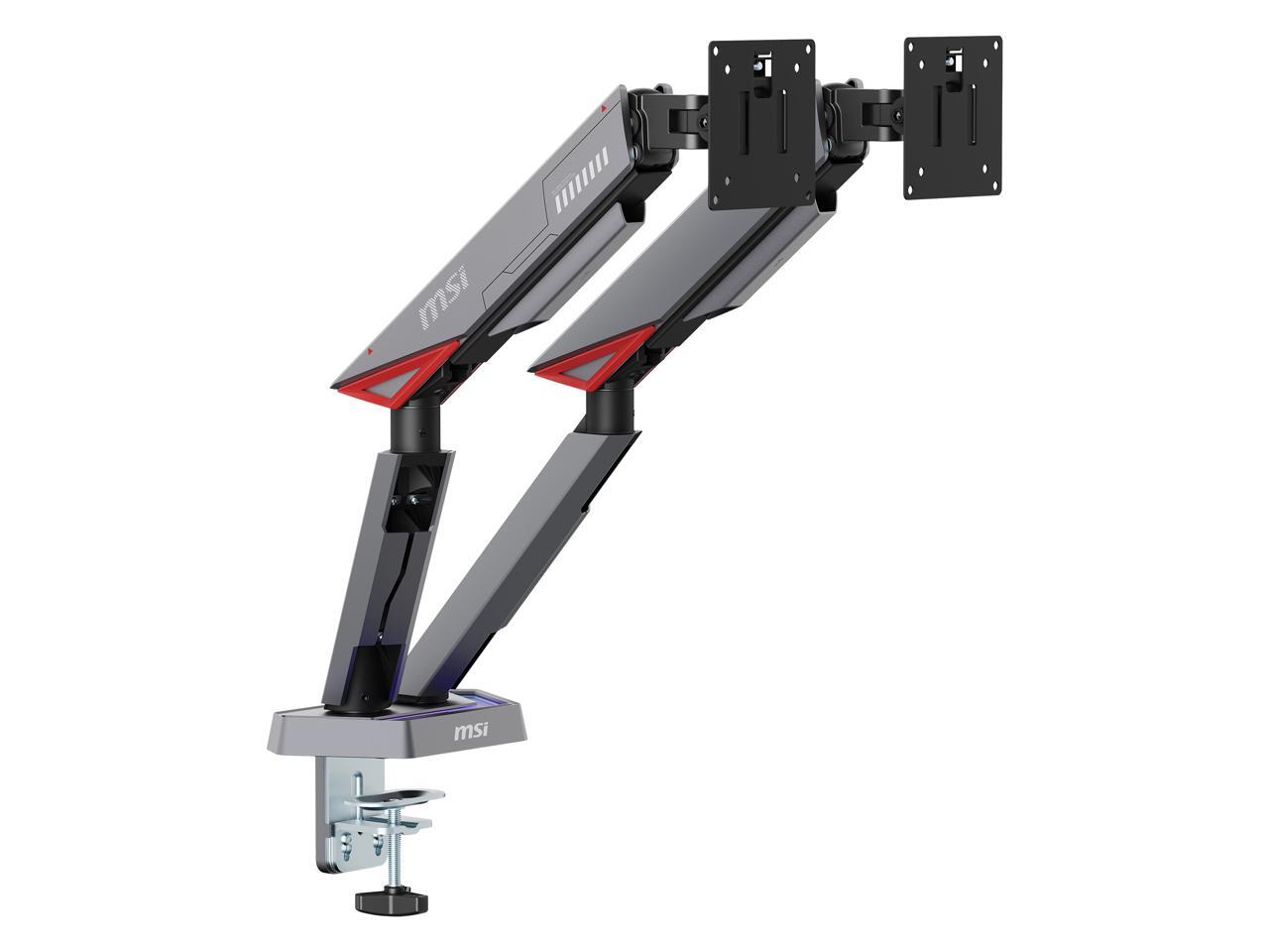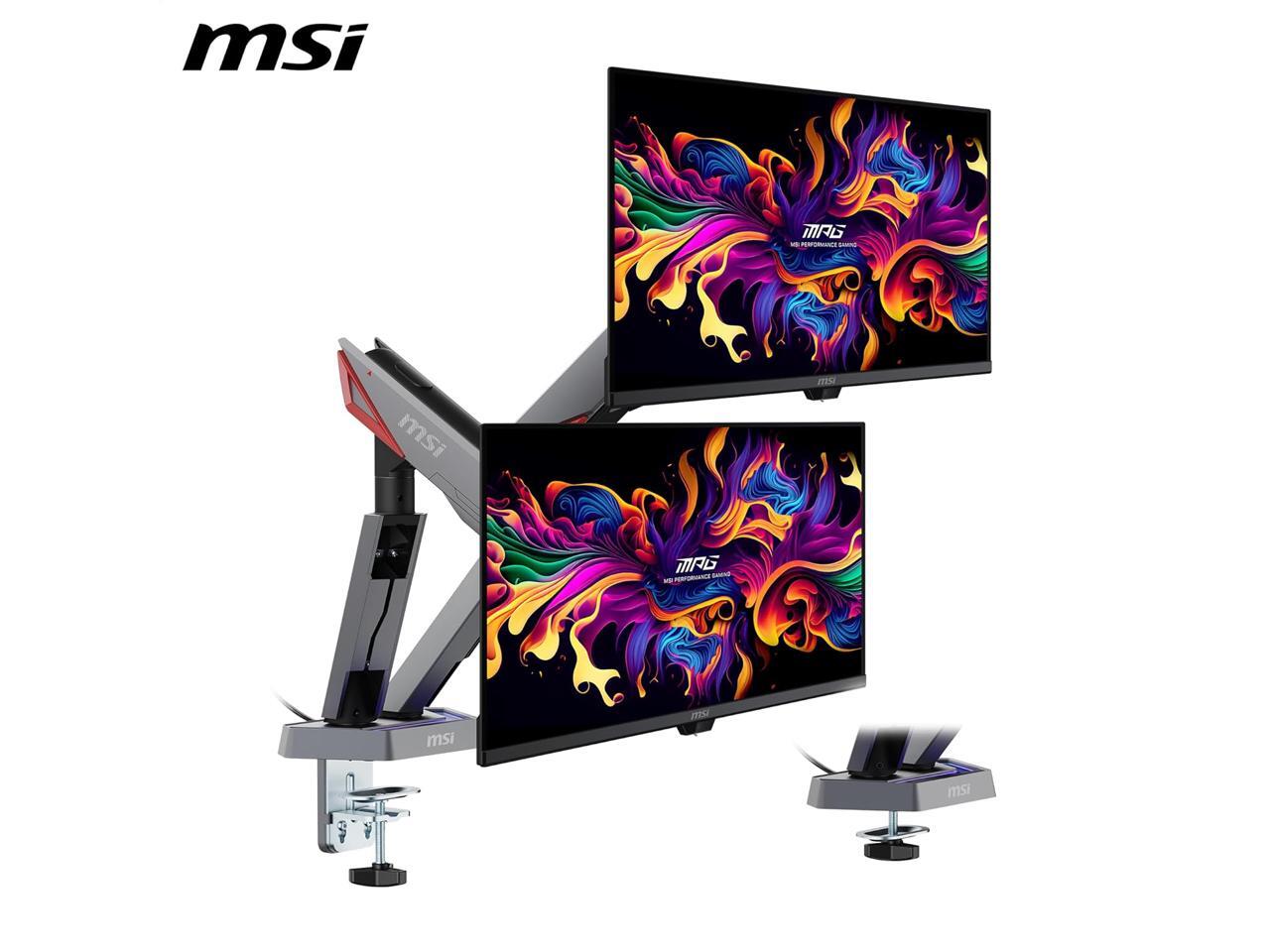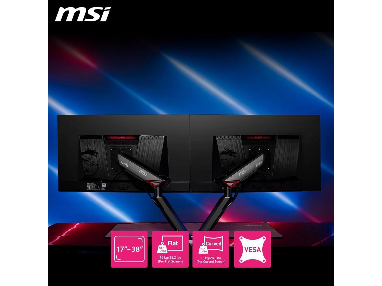 MSI MPG MT161DR - Premium RGB Dual Monitor Stand Arms, 17-38" Support, VESA Compatible, Adjustable Spring Assisted Mount, 35.2 lbs per Screen Capacity, Clamp & Grommet, Quick Release Plate - Black