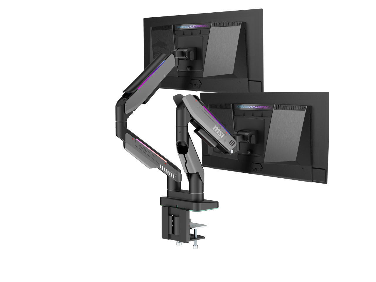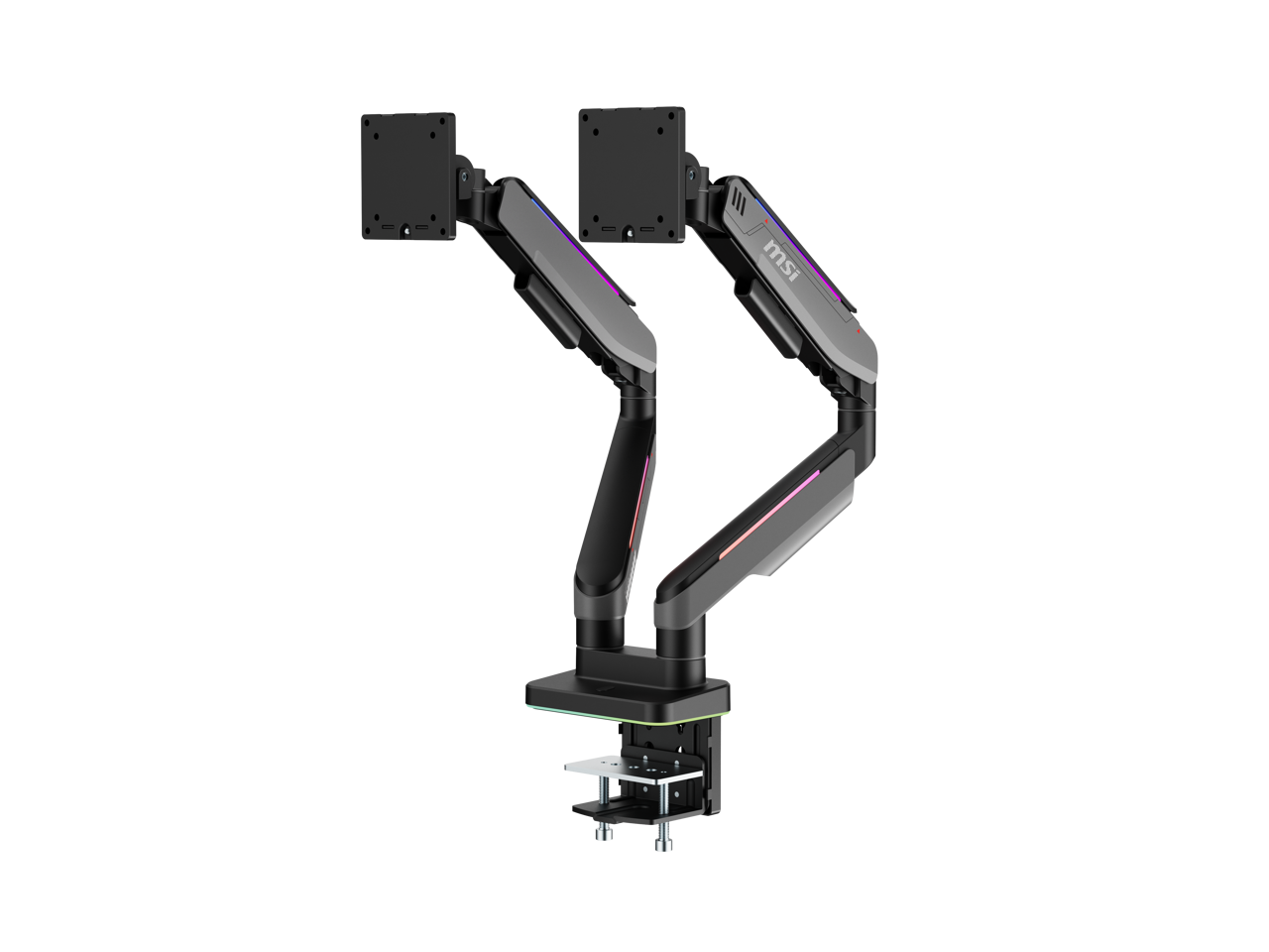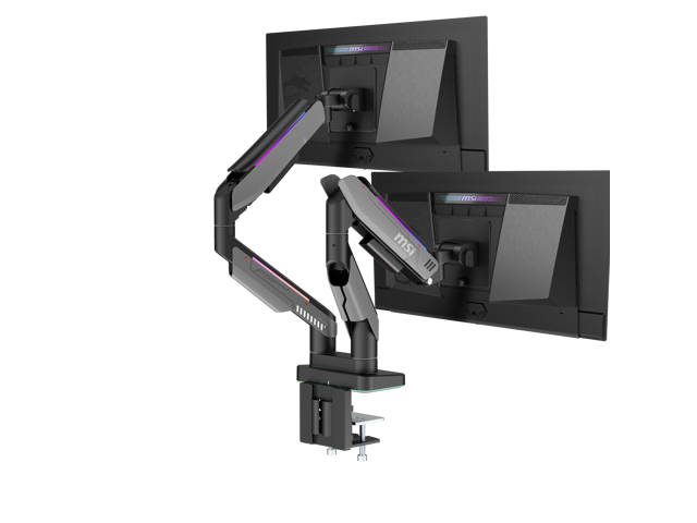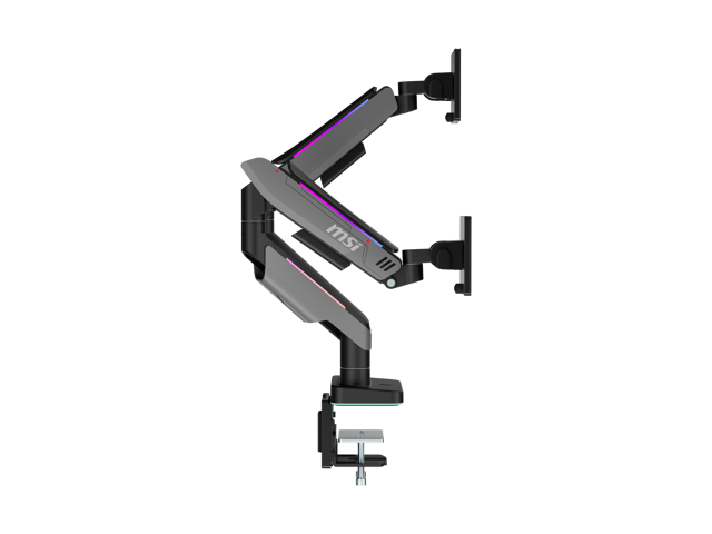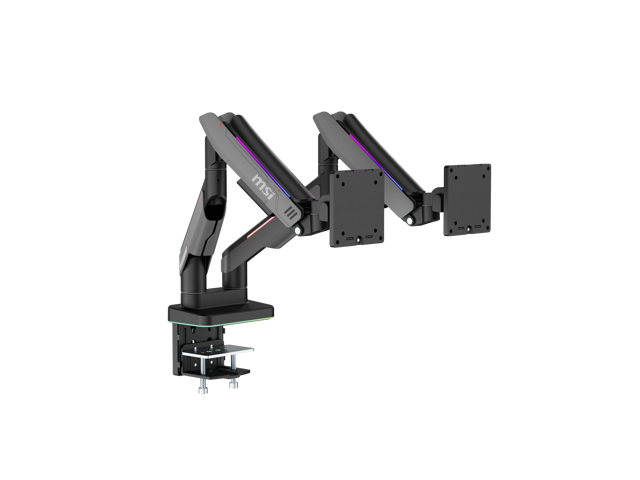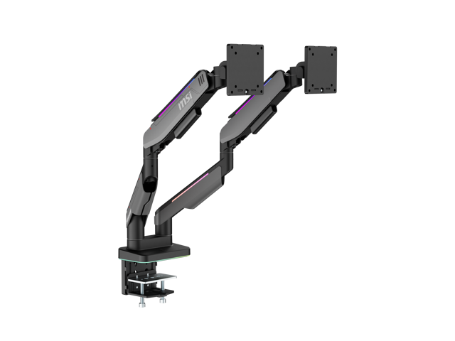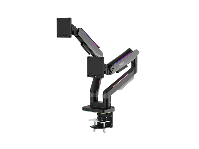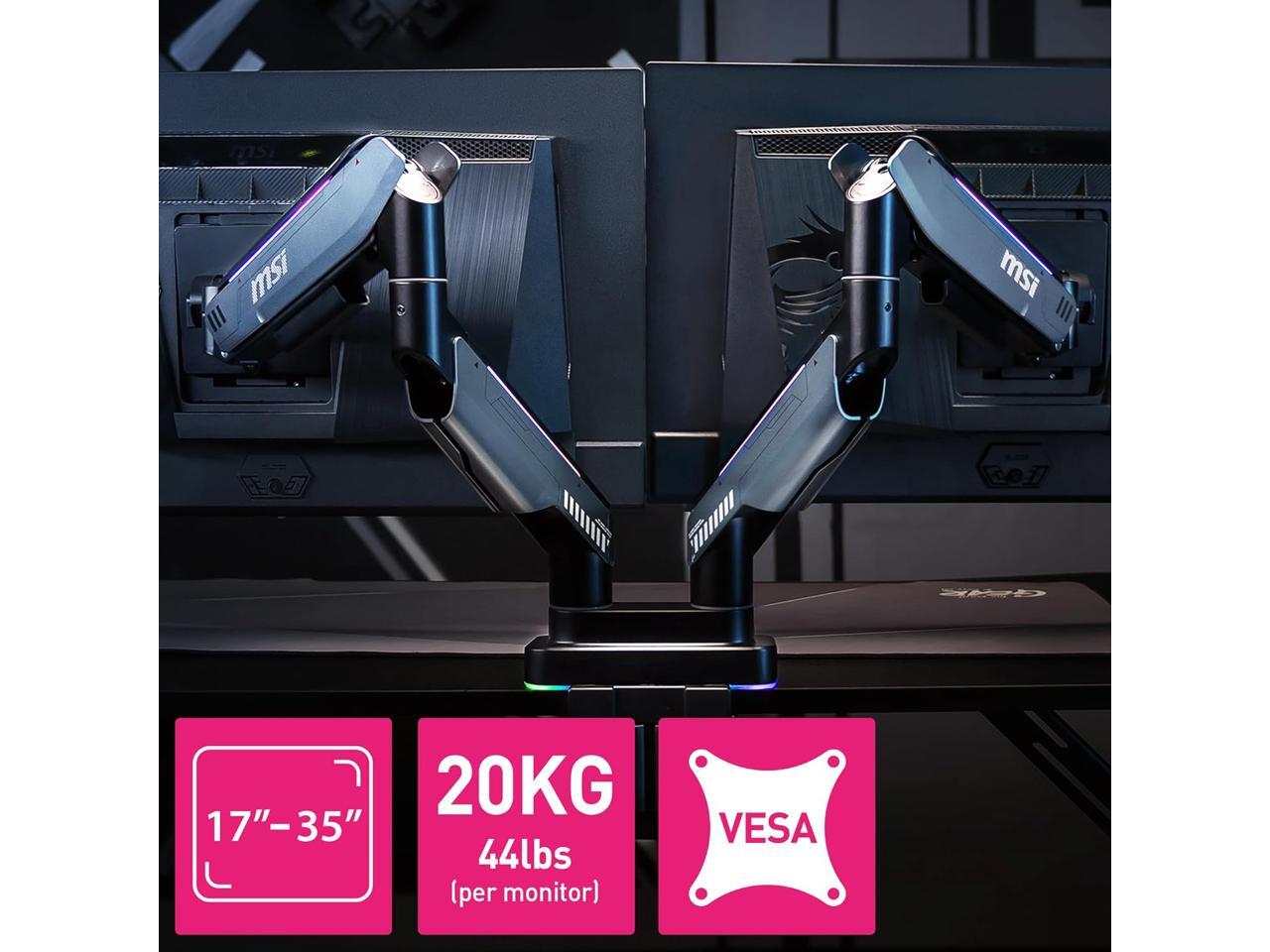 MSI MPG MT201DR V2 - Premium RGB Dual Monitor Stand Arms, 17-35" Support, VESA Compatible, Adjustable Heavy Duty Gas Spring Mount, 44 lbs per Screen Capacity, Clamp & Grommet, Quick Release Plate-Gray