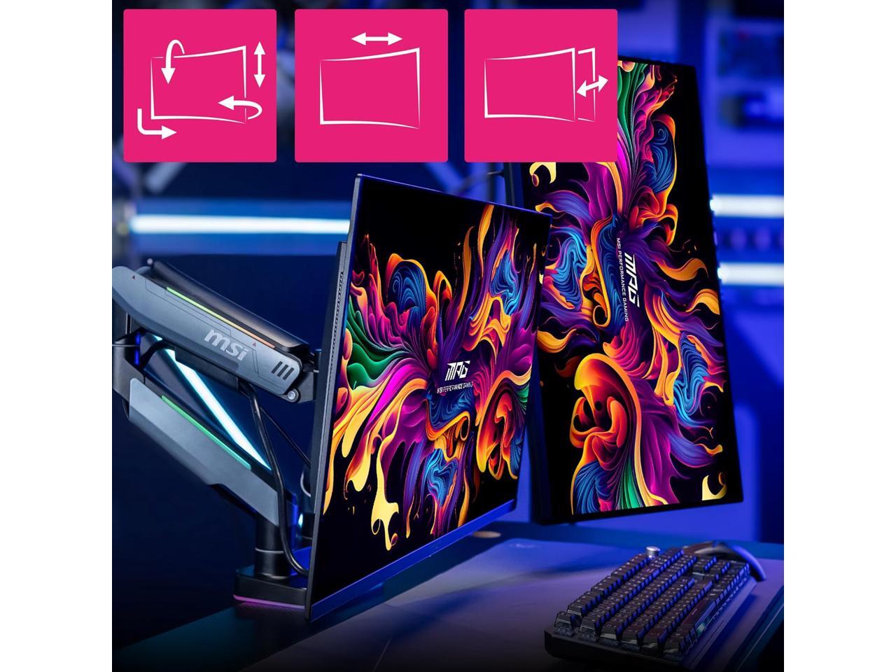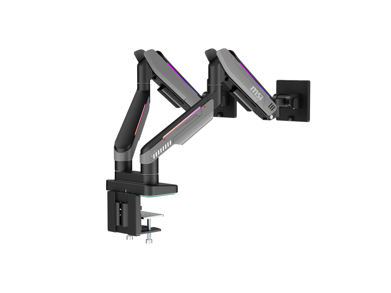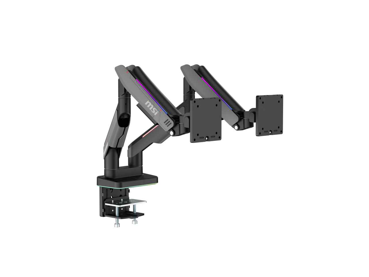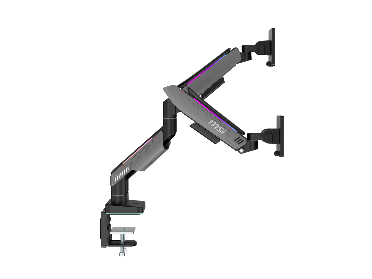 MSI MPG MT201DR V2 - Premium RGB Dual Monitor Stand Arms, 17-35" Support, VESA Compatible, Adjustable Heavy Duty Gas Spring Mount, 44 lbs per Screen Capacity, Clamp & Grommet, Quick Release Plate-Gray