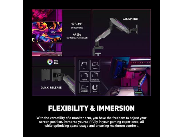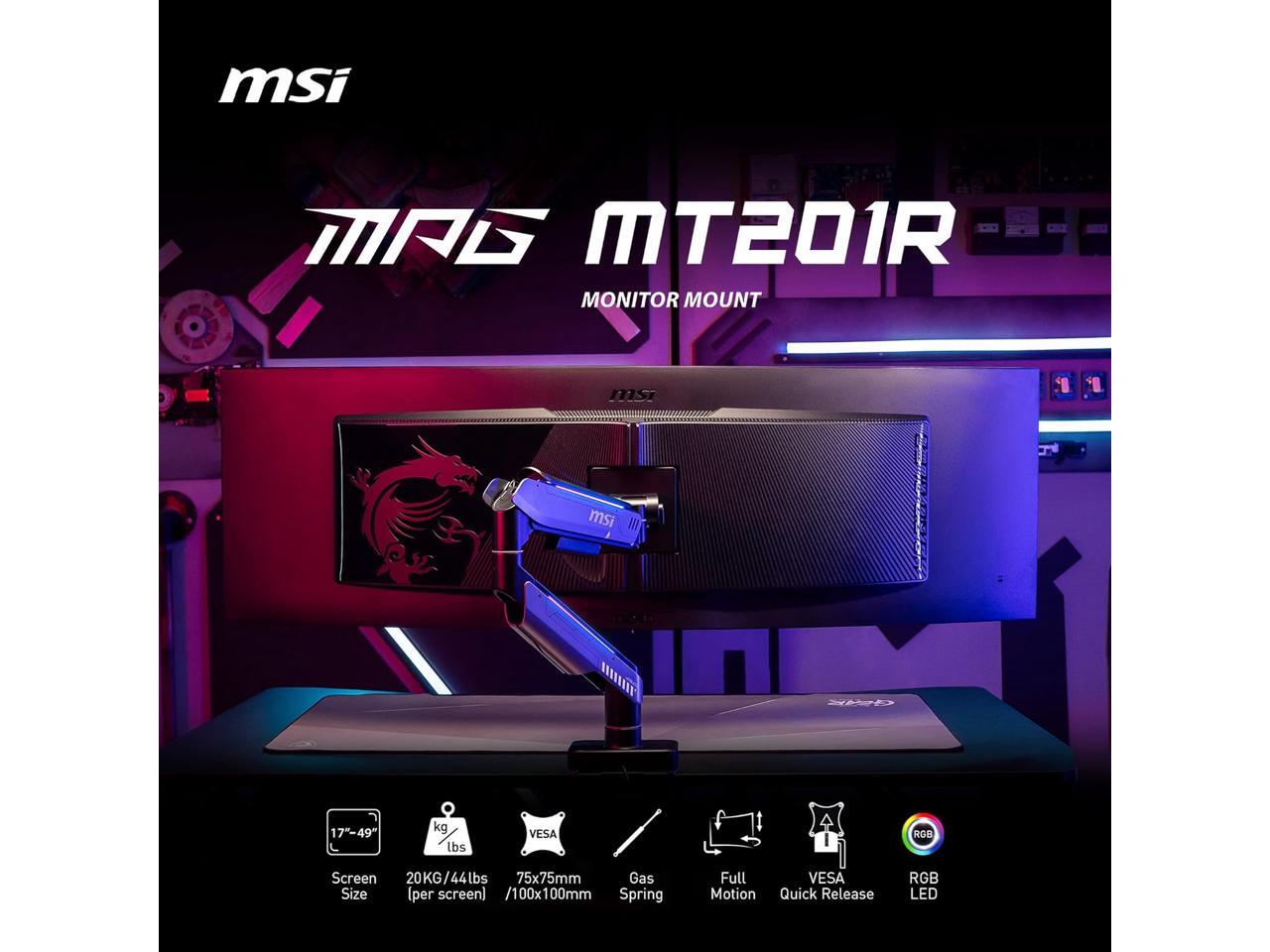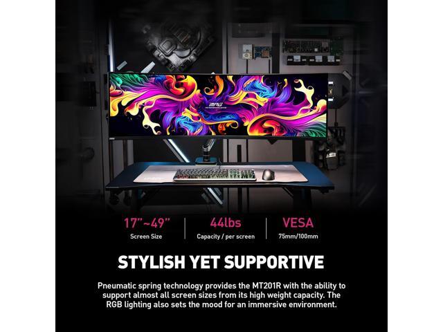 MSI MPG MT201R - Premium RGB Single Monitor Stand Arm, Supports 17-49" Screens and 44 lbs, VESA Compatible, Adjustable Heavy Duty Gas Spring Mount, Clamp & Grommet, Quick Release Plate - Gray