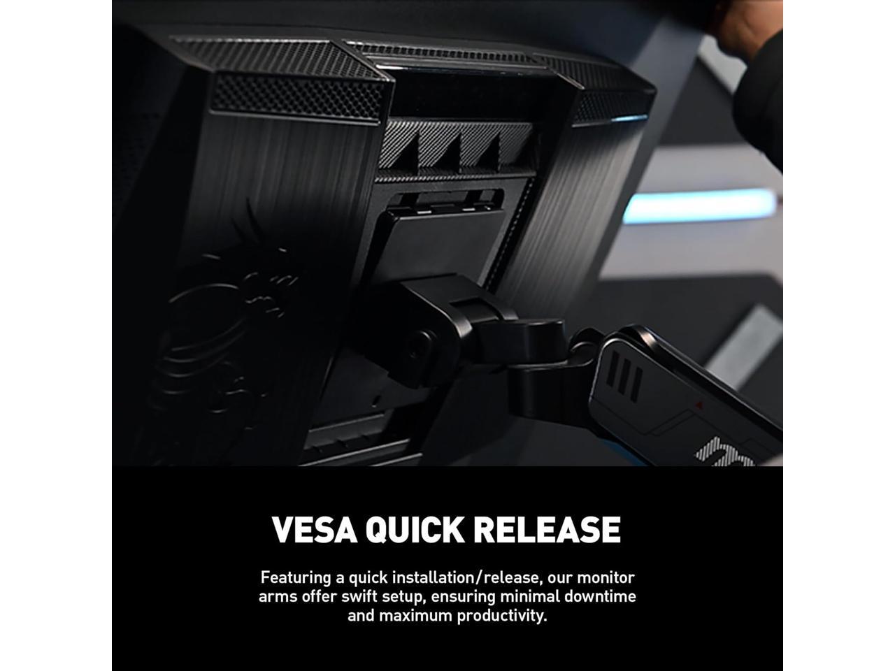 - Compatible with VESA mounting standards (100x100 and 75x75), installation is a breeze with the quick-release plate.
