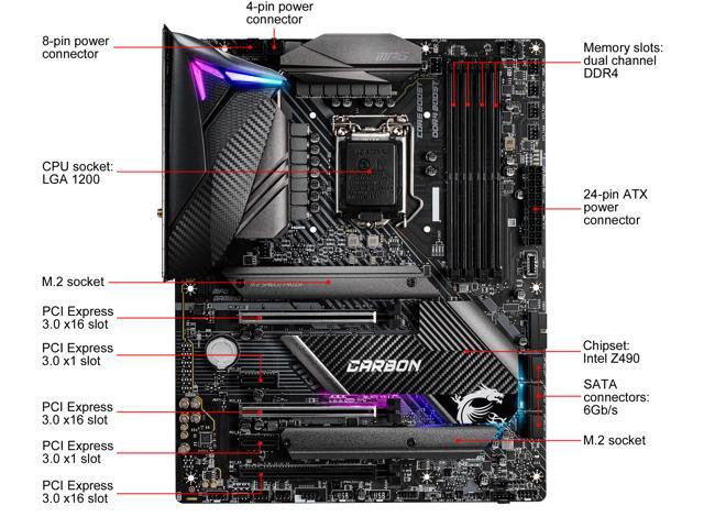 MSI MPG Z490 GAMING CARBON WIFI LGA 1200 Intel Z490 ATX Intel Motherboard