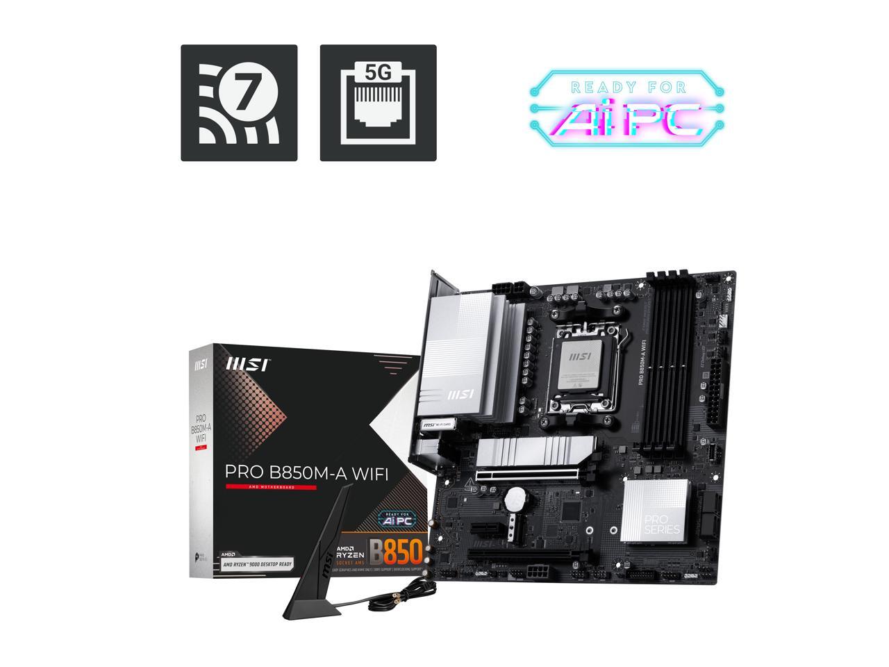 MSI PRO B850M-A WIFI AM5 , Wi-FI 7, 5G LAN, SATA 6Gbps, Bluetooth 5.4, double M.2 support,Micro ATX AMD Motherboard