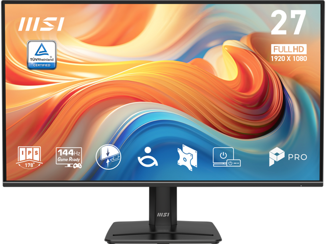 MSI 27" 144Hz IPS FHD Monitor 1ms (MPRT) / 4ms (GtG) Adaptive Sync 83% Adobe RGB / 87% DCI-P3 / 116% sRGB (CIE 1976) Flat Panel PRO MP272 E14C