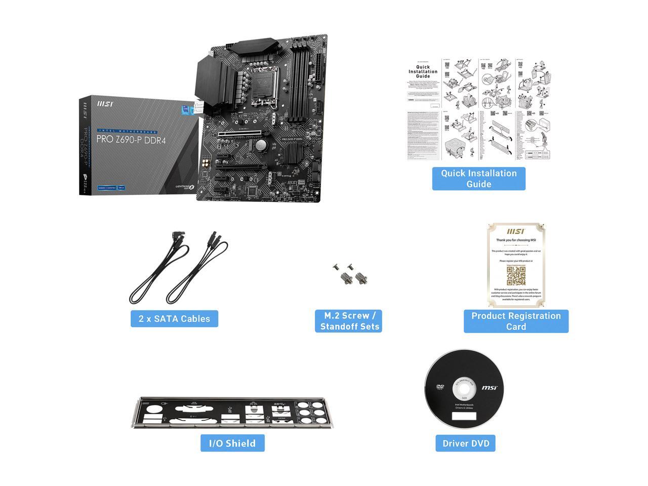 MSI PRO Z690-P DDR4 LGA 1700 Intel Z690 SATA 6Gb/s ATX Intel Motherboard