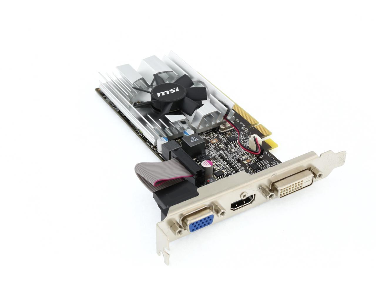 Your PC is now more visual than ever with the MSI R6450-MD1GD3/LP-R graphics card. Oriented for entry-level users, this card delivers basic graphics power for your daily tasks, at a price that won't make you wince. An assortment of advanced DirectX 11 technology enables a performance boost in your work and play applications, such as HD video playback, photo editing, web surfing and even the Windows 7 operation.