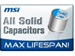 MSI Solid Capacitor Graphic CardsMSI Graphics Card products utilize high quality solid capacitor for lower temperature, high efficiency and up to 10 years ultra-long lifetime (under full load). Aluminum core eliminates the risk of explosion. For the gamers and high-end users, this feature not only means that product has better quality components within, but also provide much stronger support while users want to engage in hard-core tuning.