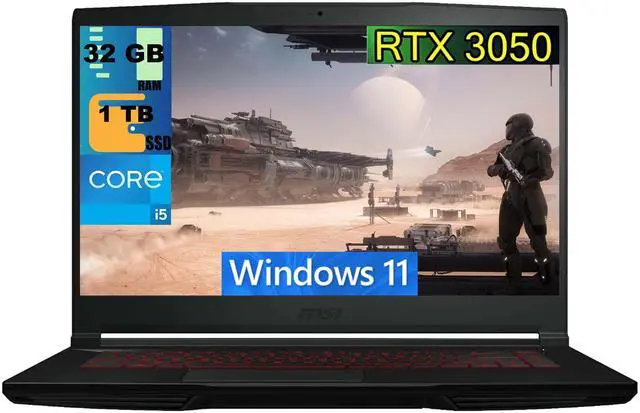 MSI GF63 Thin 15 Gaming Laptop, 15.6" FHD 144Hz, Intel Core i5-11400H 6 Cores Processor, NVIDIA GeForce RTX 3050 4GB GDDR6, 32GB DDR4 1TB PCIe SSD, Wi-Fi 6, Windows 11