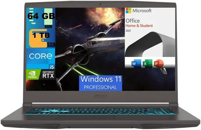 MSI Thin 15 Gaming Laptop, 15.6" FHD 144Hz, Intel Core i5-12450H 8-Core Processor, GeForce RTX 2050 4 GB GDDR6, 64GB DDR5 1TB PCIe SSD, Backlit KB, Windows 11 Pro,Microsoft Office License