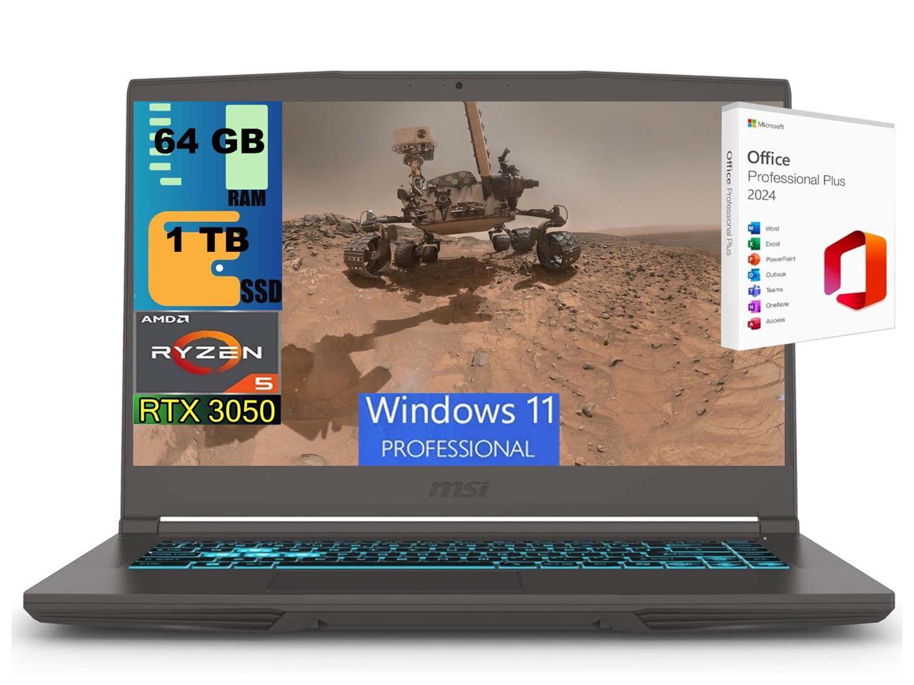 MSI Thin A15 Gaming Laptop, 15.6" FHD 144Hz, AMD Ryzen 5 7535HS 6 Cores Processor, NVIDIA GeForce RTX 3050 4GB GDDR6, 64GB DDR5 1TB PCIe SSD, WiFi 6E, Windows 11 Pro ,Office 2024 License