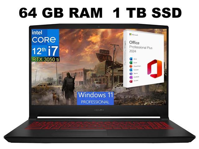 MSI Katana GF66 15 Gaming Laptop, 15.6" 144Hz Display, Intel Core i7-12650H 10 cores Processor, GeForce RTX 3050 Ti 4 GB, 64GB DDR4 1TB PCIe SSD, Cooler Boost 5, Windows 11 Pro ,Office 2024 License