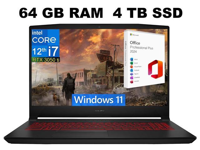 MSI Katana GF66 15 Gaming Laptop, 15.6" 144Hz Display, Intel Core i7-12650H 10 cores Processor, GeForce RTX 3050 Ti 4 GB, 64GB DDR4 4TB PCIe SSD, Cooler Boost 5, Windows 11 ,Office 2024 License
