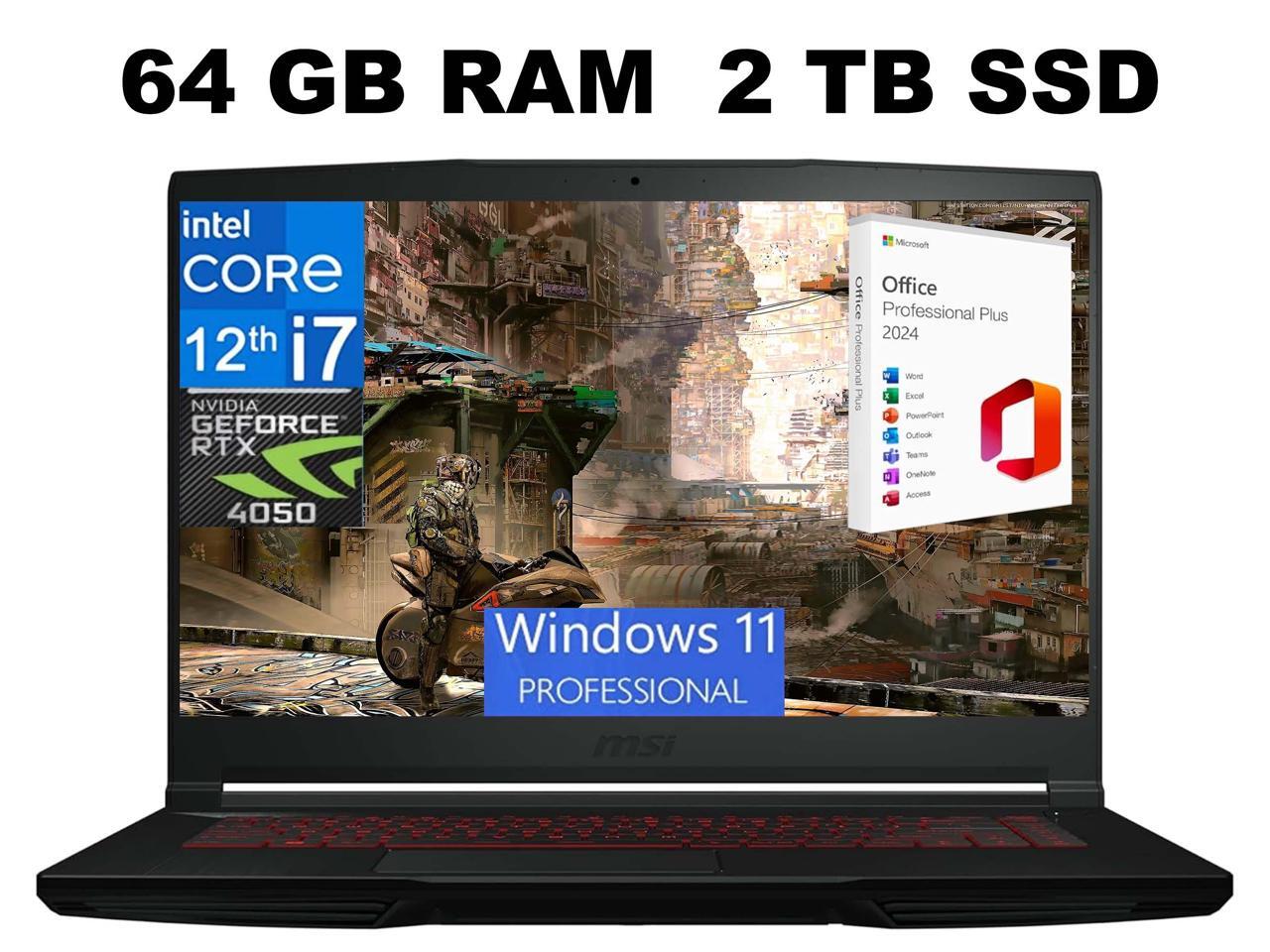 MSI Thin GF63 15 Gaming Laptop, 15.6" FHD 144Hz, Intel Core i7-12650H 10-Cores, GeForce RTX 4050 6GB GDDR6 Graphics, 64GB DDR4 2TB PCIe SSD, Cooler Boost 5, Windows 11 Pro ,Office 2024 License