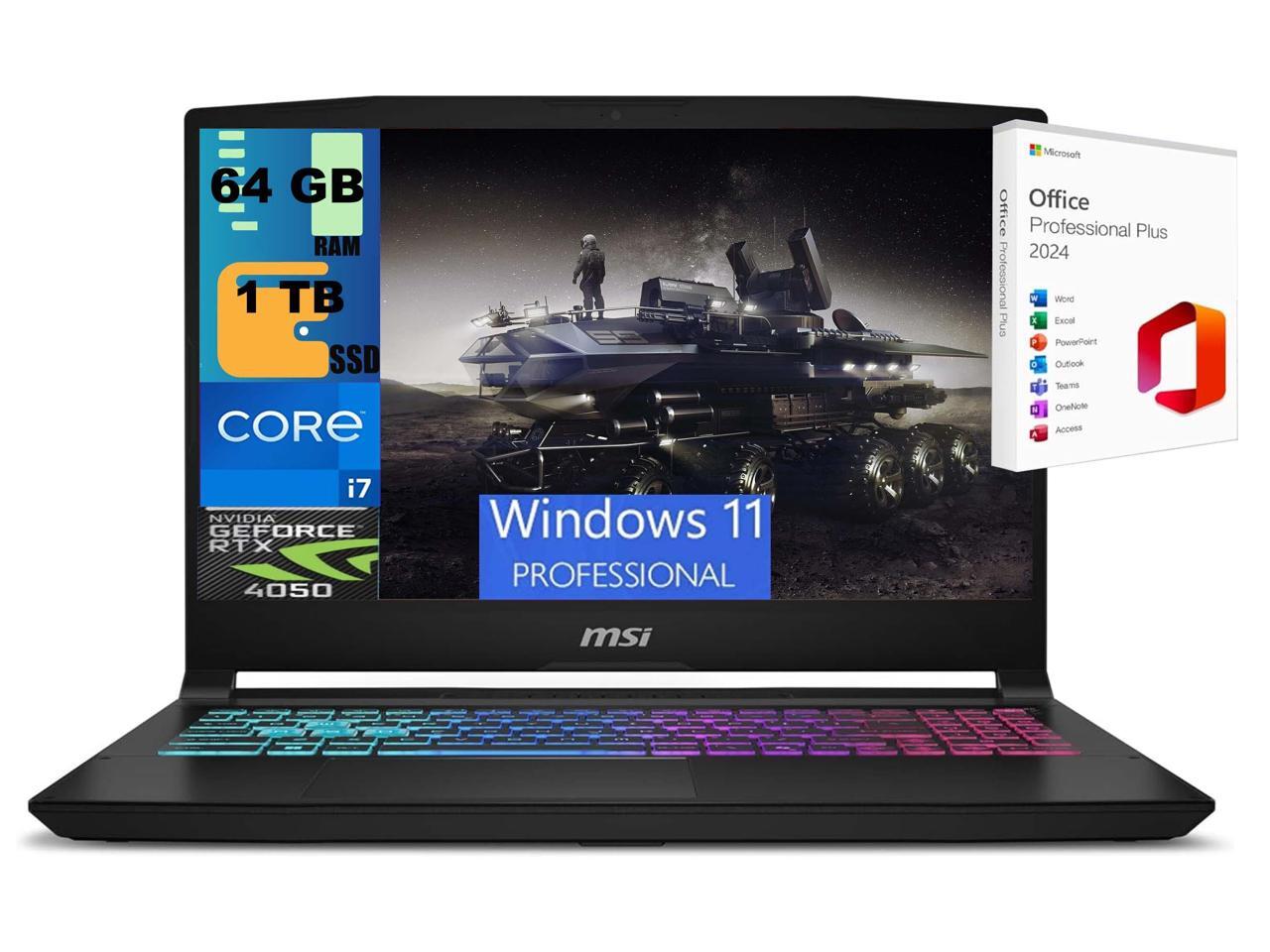 MSI Katana 15 Gaming Laptop, 15.6" FHD 144Hz, Intel Core i7-13620H 10 cores Processor, NVIDIA GeForce RTX 4050 GDDR6 6GB, 64GB DDR5 1TB PCIe SSD, WiFi 6, Windows 11 Pro ,Office 2024 License