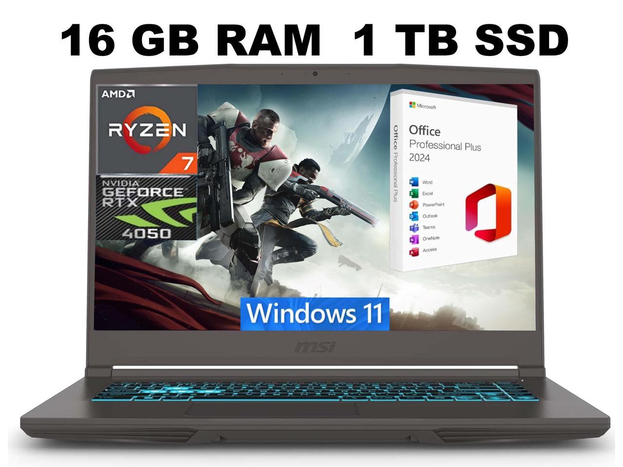 MSI Thin A15 Gaming Laptop, 15.6" FHD 144Hz, AMD Ryzen 7 7735HS 8 Cores Processor, NVIDIA GeForce RTX 4050 6GB GDDR6, 16GB DDR5 1TB PCIe SSD, Cooler Boost 5, Windows 11 ,Office 2024 License