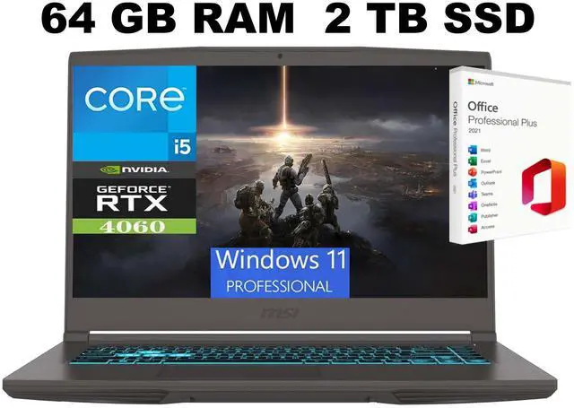 MSI Thin 15 Gaming Laptop, 15.6" FHD 144Hz, Intel Core i5-13420H 8 cores Processor, NVIDIA GeForce RTX 4060 8GB Graphic, 64GB DDR5 2TB PCIe SSD, Backlit KB, Windows 11 Pro ,Office 2021 License