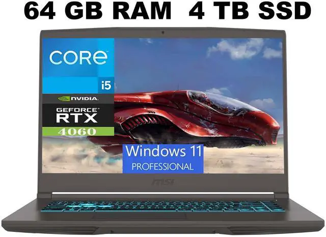 MSI Thin 15 Gaming Laptop, 15.6" Full HD (1920x1080) 144Hz, Intel Core i5-13420H 8 cores Processor, NVIDIA GeForce RTX 4060 8GB Graphic, 64GB DDR5 4TB PCIe SSD, Backlit Keyboard, Windows 11 Pro