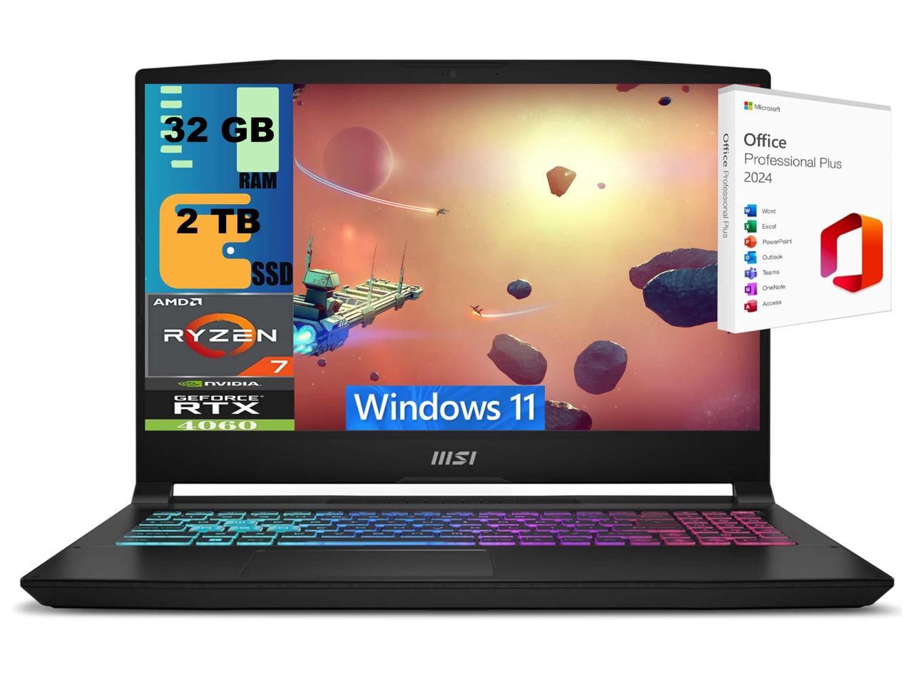MSI Katana A15 AI Gaming Laptop, 15.6" FHD 144Hz, AMD Ryzen 7 8845HS Octa-core Processor, NVIDIA GeForce RTX 4060 8GB Graphic, 32GB DDR5 2TB PCIe SSD, RGB Backlit, Windows 11 ,Office 2024 License