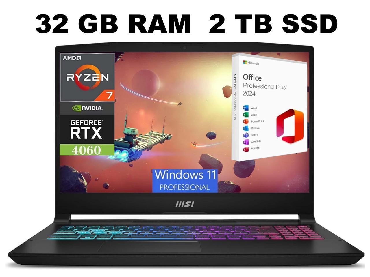 MSI Katana A15 AI Gaming Laptop, 15.6" FHD 144Hz Display, AMD Ryzen 7 8845HS 8 core Processor, GeForce RTX 4060 8GB Graphic, 32GB DDR5 2TB PCIe SSD, RGB Backlit, Windows 11 Pro ,Office 2024 License