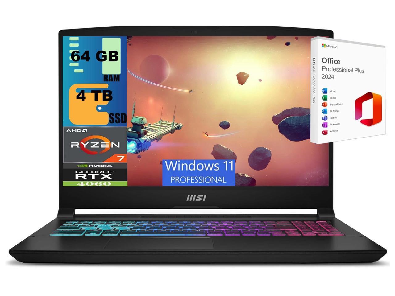 MSI Katana A15 AI Gaming Laptop, 15.6" FHD 144Hz, AMD Ryzen 7 8845HS Octa-core Processor, NVIDIA GeForce RTX 4060 8GB Graphic, 64GB DDR5 4TB PCIe SSD, RGB Backlit, Windows 11 Pro ,Office 2024 License