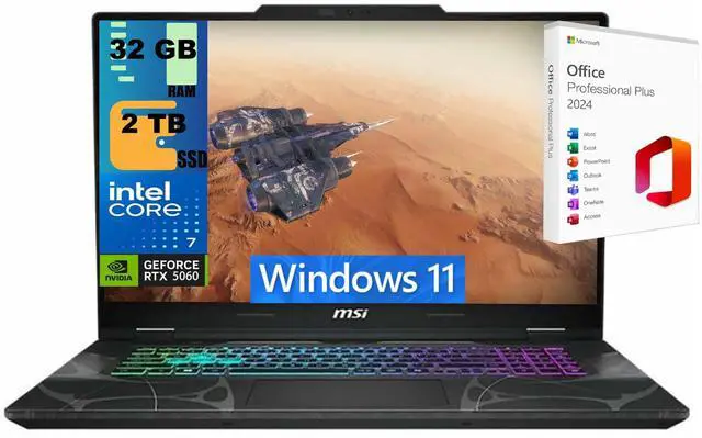 MSI Cyborg 15 Gaming Laptop, 15.6" FHD 144Hz, Intel Core 7-240H 10-Cores Processor, NVIDIA GeForce RTX 5060 8G GDDR7, 32GB DDR5 2TB PCIe SSD, 4-Zone RGB Keyboard, Windows 11 ,Office 2024 License